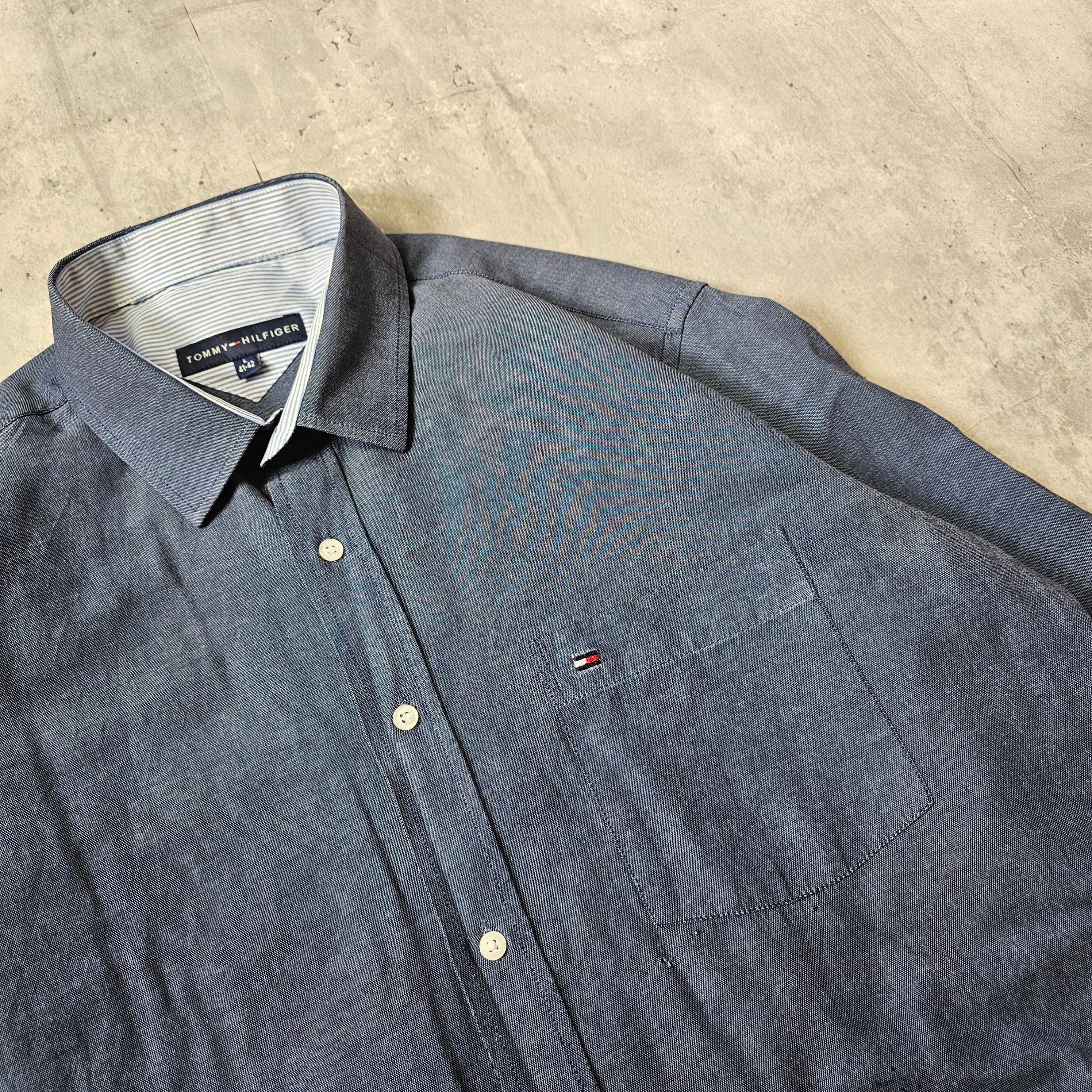 『 TOMMY HILFIGER / トミーヒルフィガー 』 ダンガリーシャツ ( Lサイズ ) インディゴ色