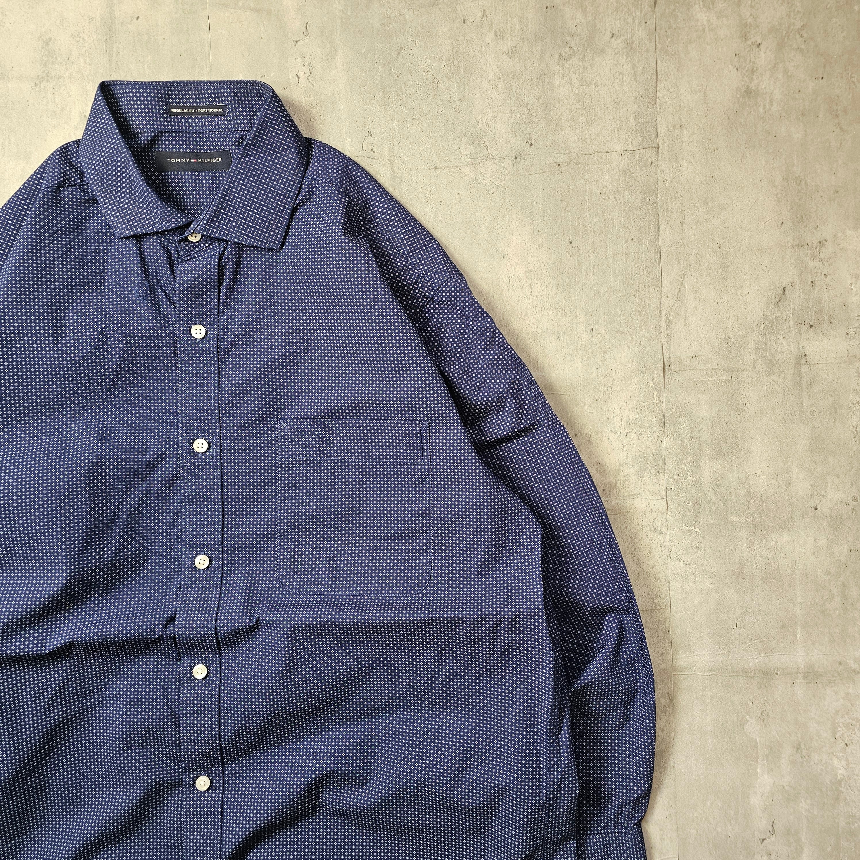 【『 TOMMY HILFIGER / トミーヒルフィガー 』 柄シャツ ( Lサイズ ) ネイビー色 】