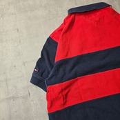 『 TOMMY HILFIGER / トミーヒルフィガー 』 半袖 ボーダーポロシャツ ( Lサイズ ) ネイビー✕レッド色