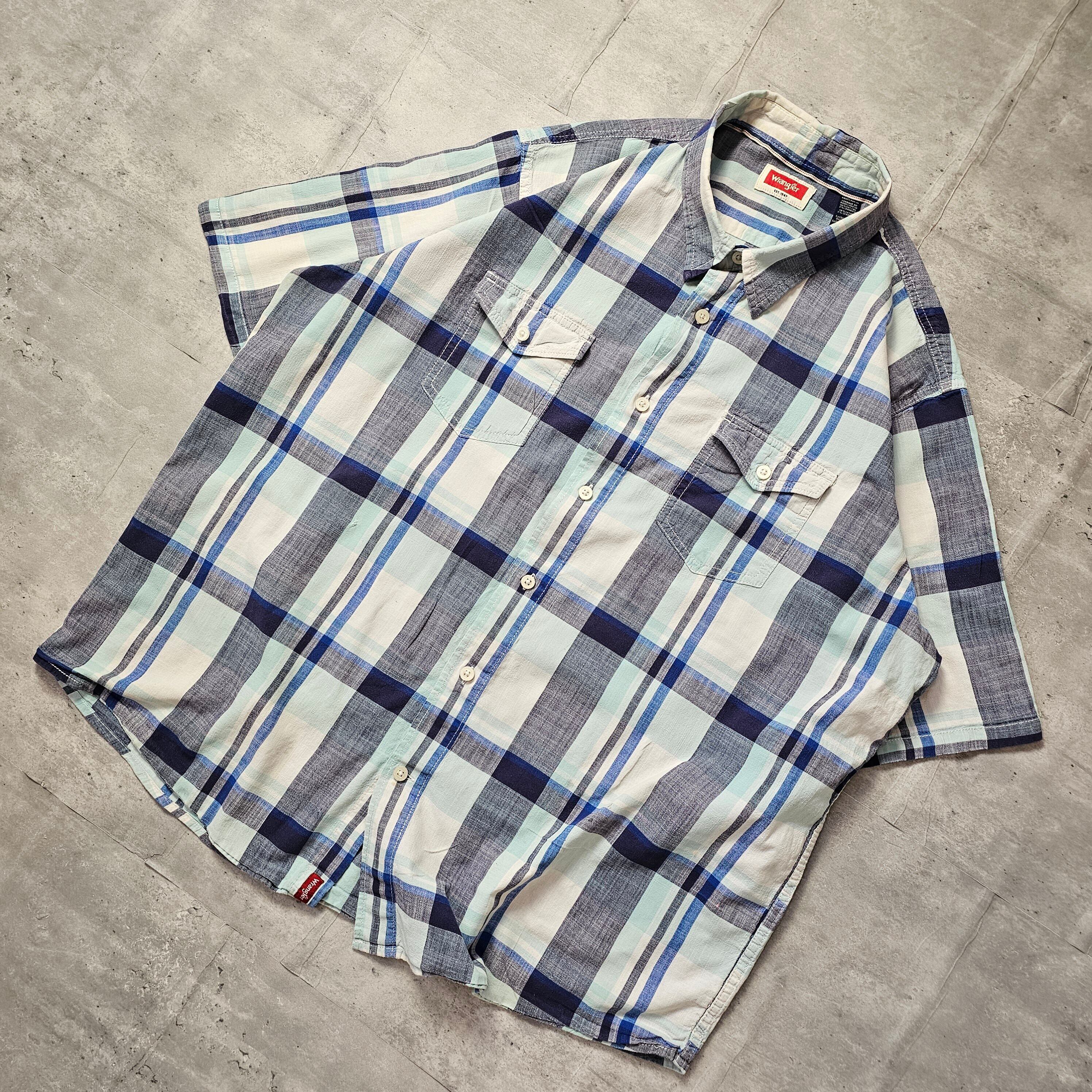 『 Wrangler / ラングラー 』 半袖 チェックシャツ ( XXLサイズ ) ブルー✕インディゴ色