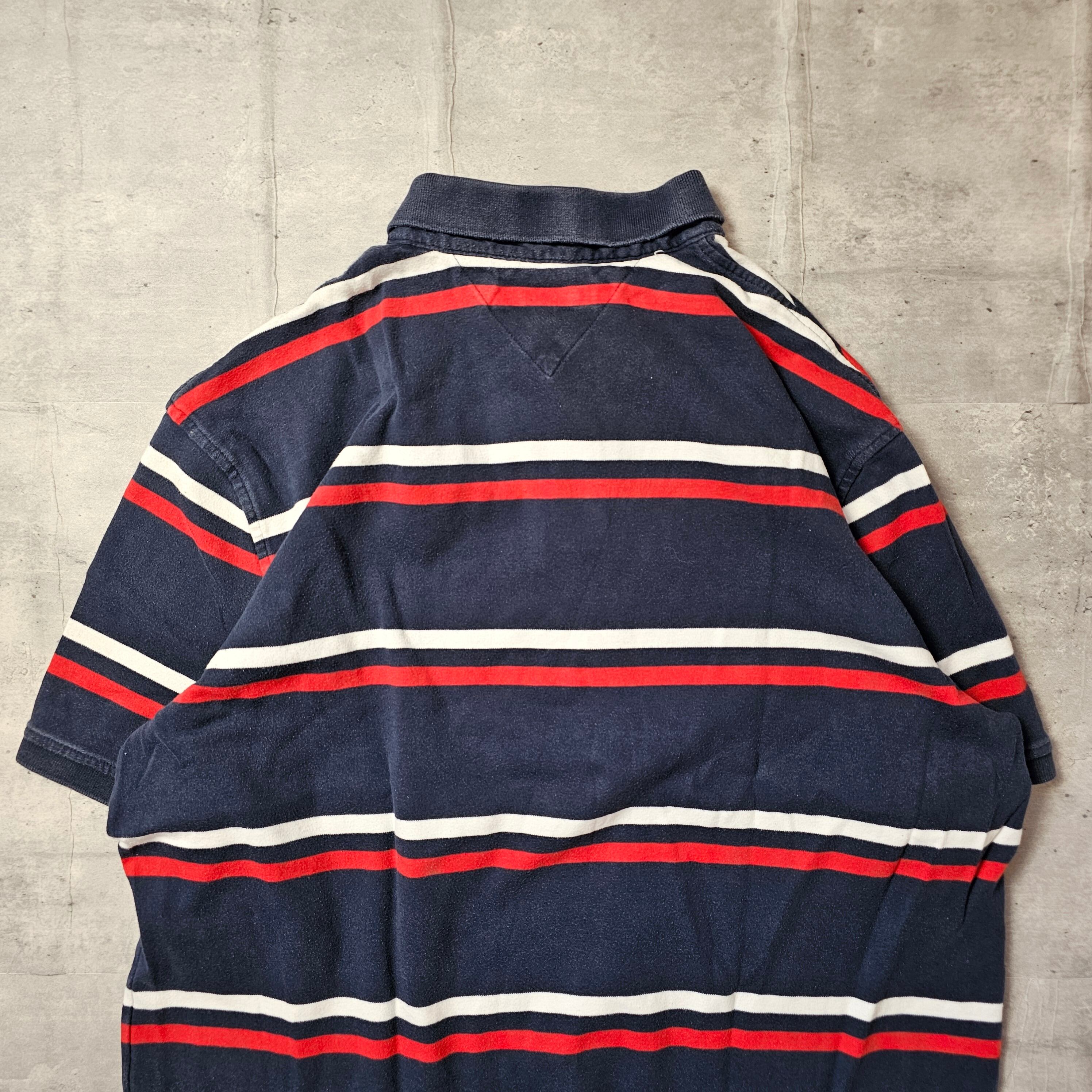 【『 TOMMY HILFIGER / トミーヒルフィガー 』 半袖 ボーダーポロシャツ ( XLサイズ ) ネイビー色 】