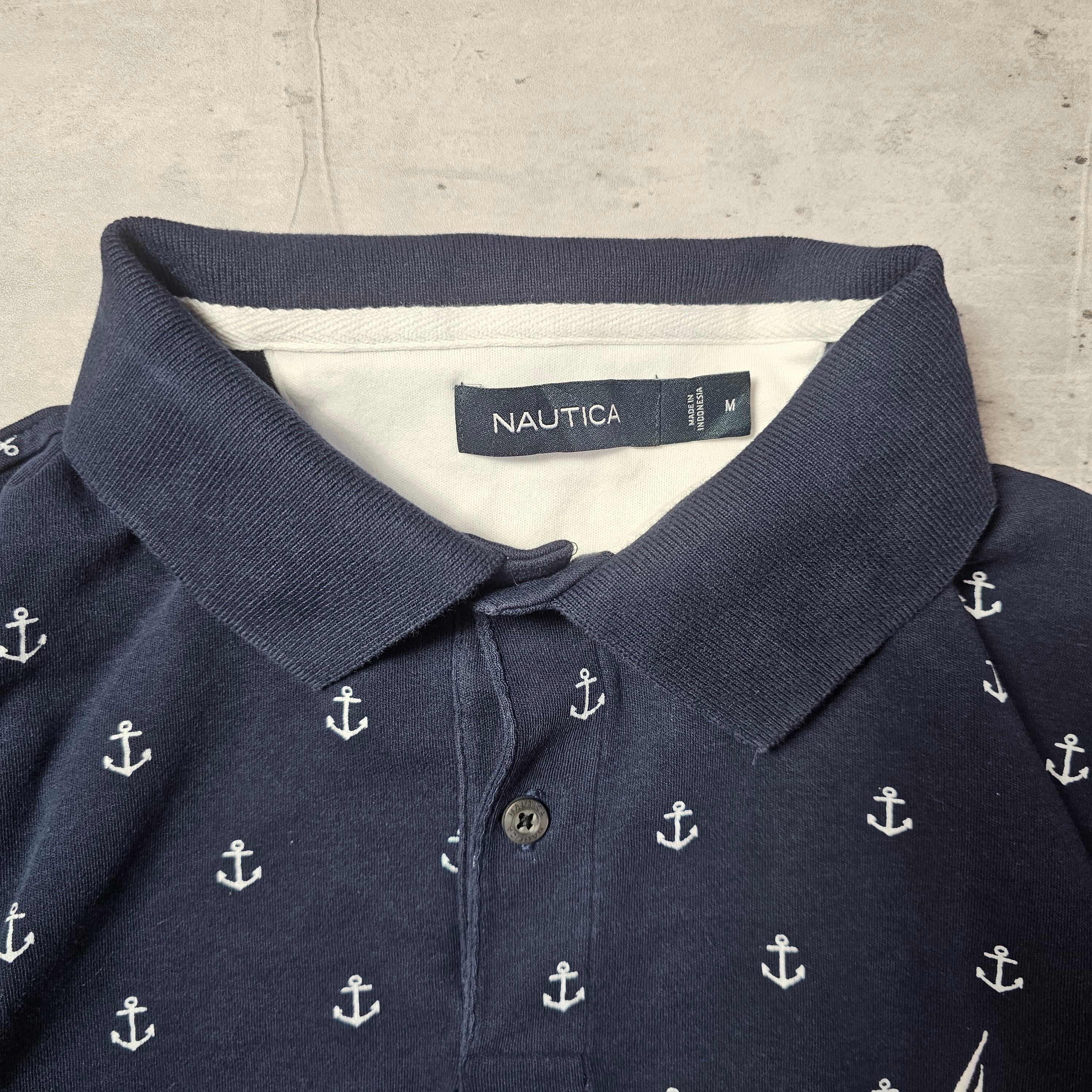 【『 NAUTICA / ノーティカ 』 半袖 イカリ柄ポロシャツ ( Mサイズ ) ネイビー色 】