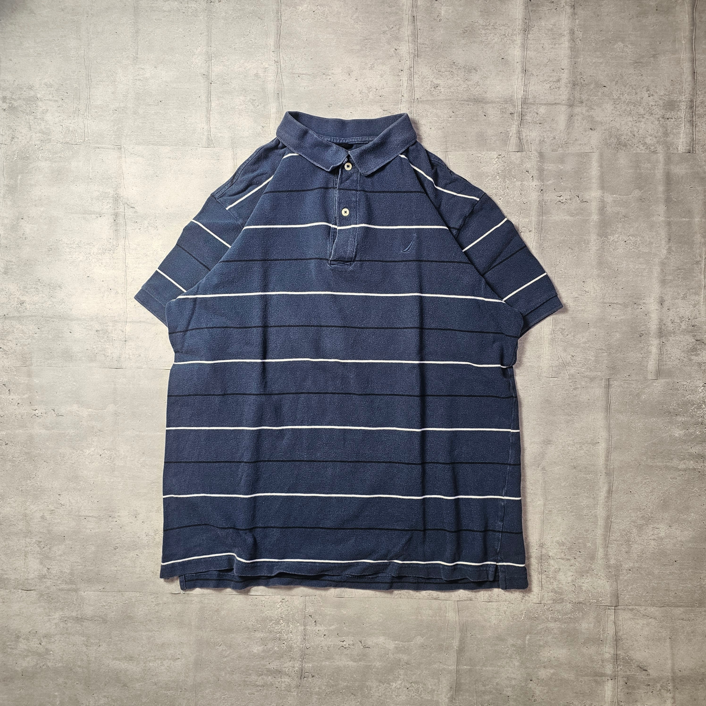 『 NAUTICA / ノーティカ 』 半袖 ボーダーポロシャツ ( XLサイズ ) ネイビー色