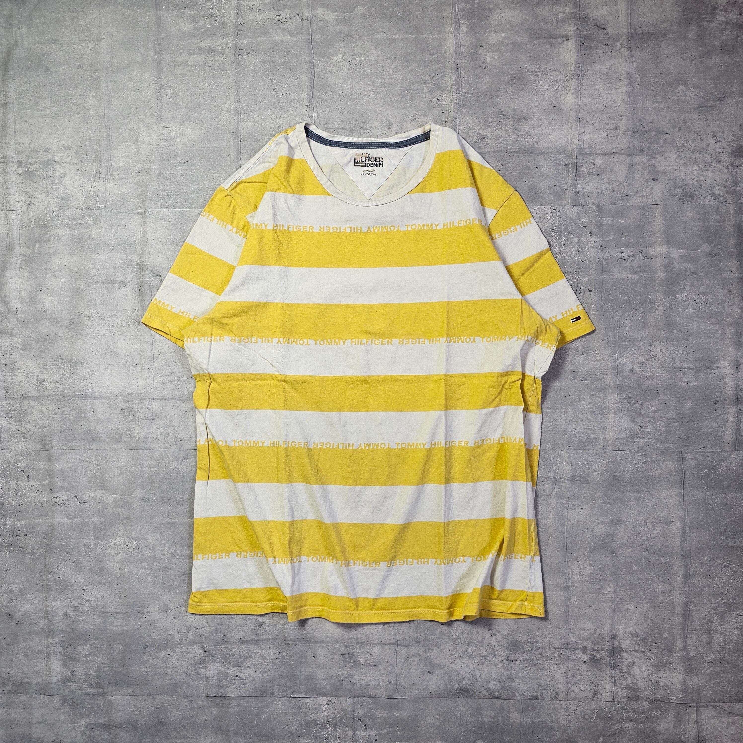 【『 TOMMY HILFIGER / トミーヒルフィガー 』 ボーダーTシャツ ( XLサイズ ) イエロー×ホワイト色 】