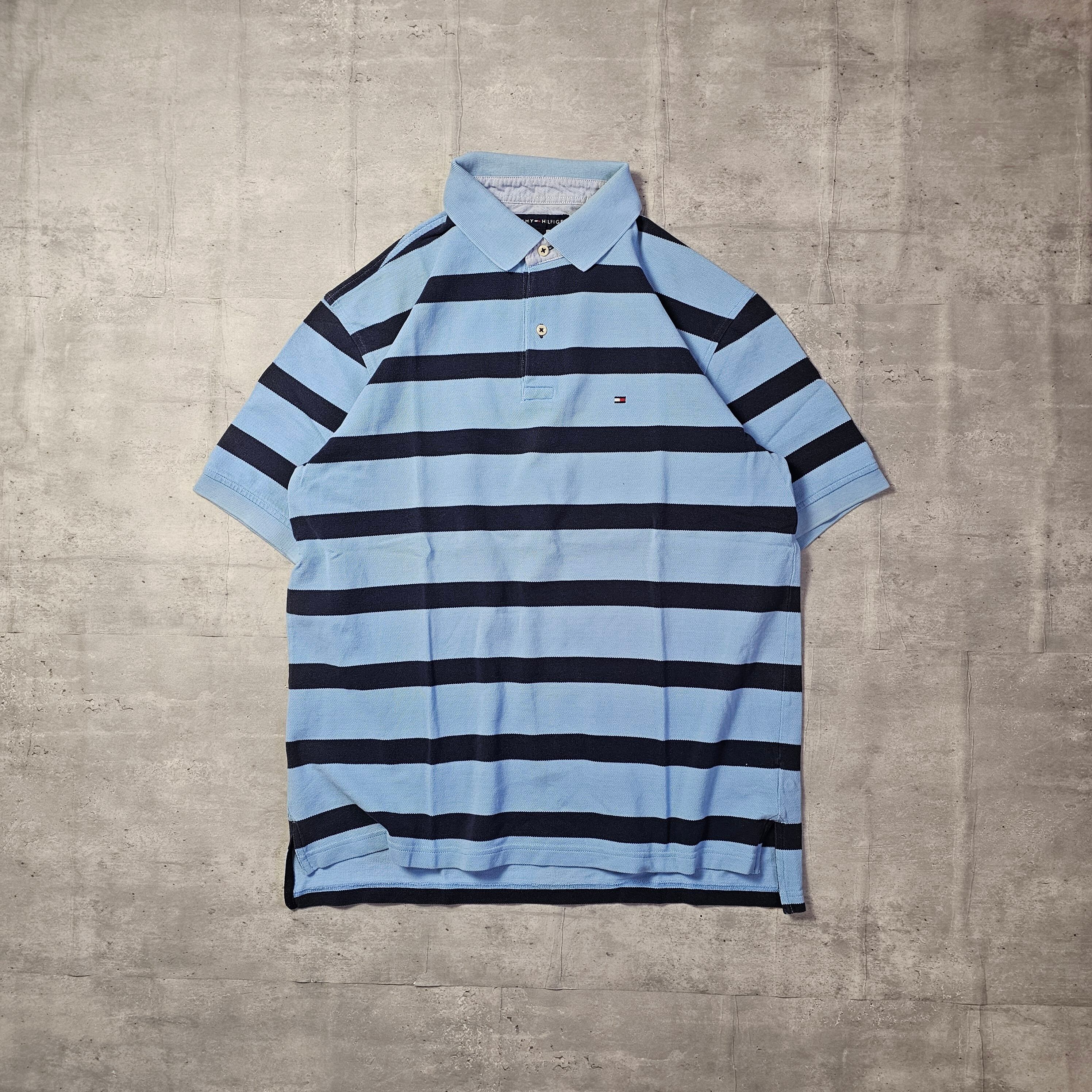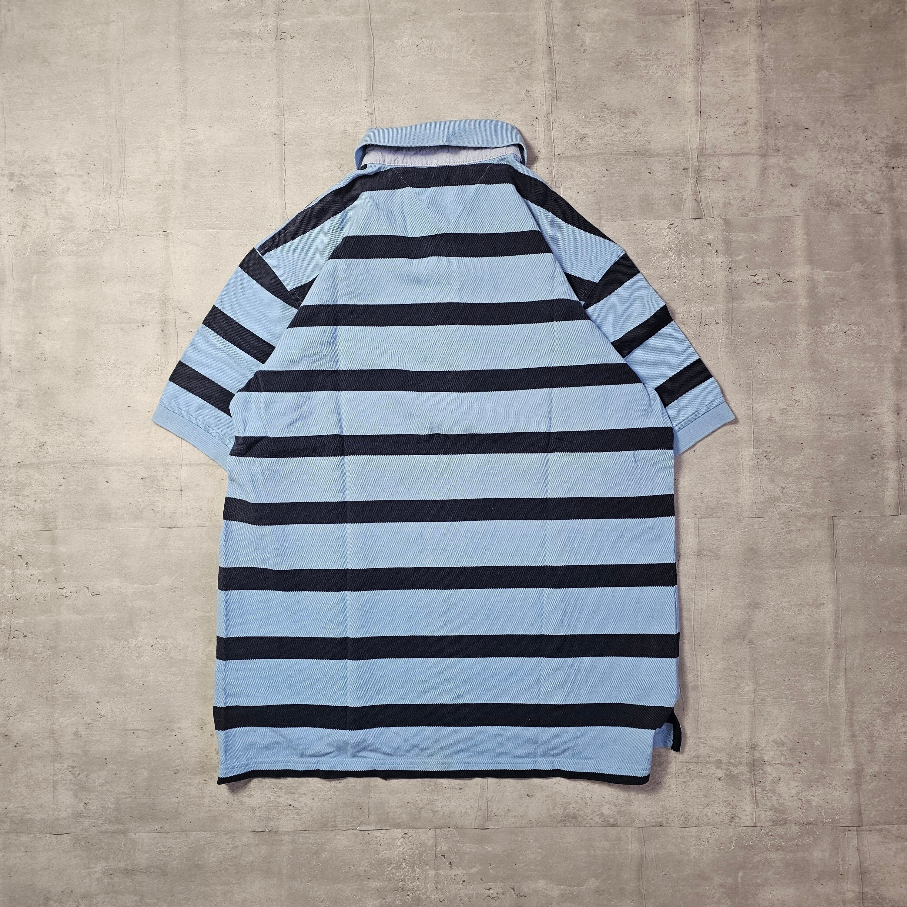 【『 TOMMY HILFIGER / トミーヒルフィガー 』 半袖 ボーダーポロシャツ ( Lサイズ ) ブルー色 】