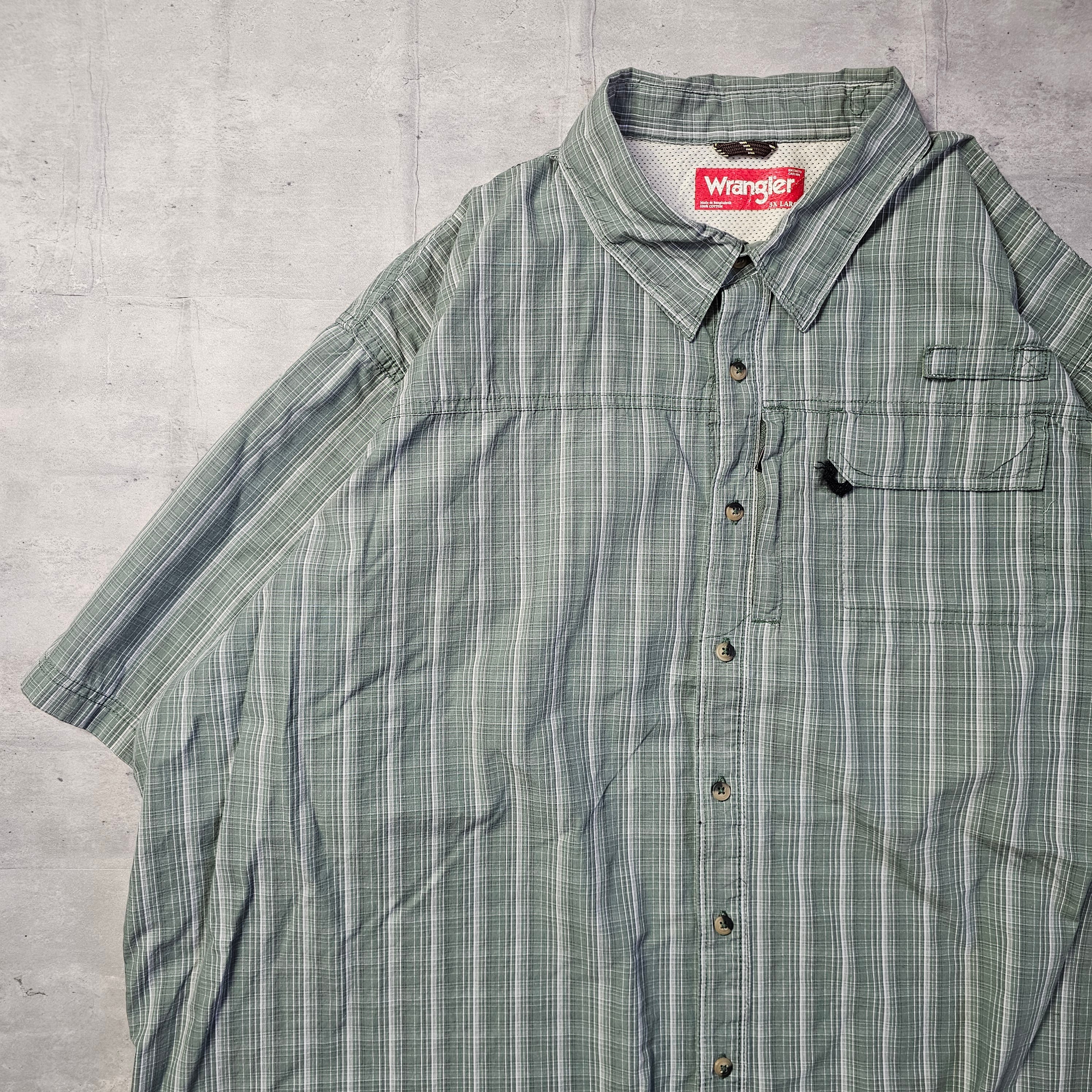 『 Wrangler / ラングラー 』 半袖 オーバーサイズチェックシャツ ( 3XLサイズ ) グリーン色