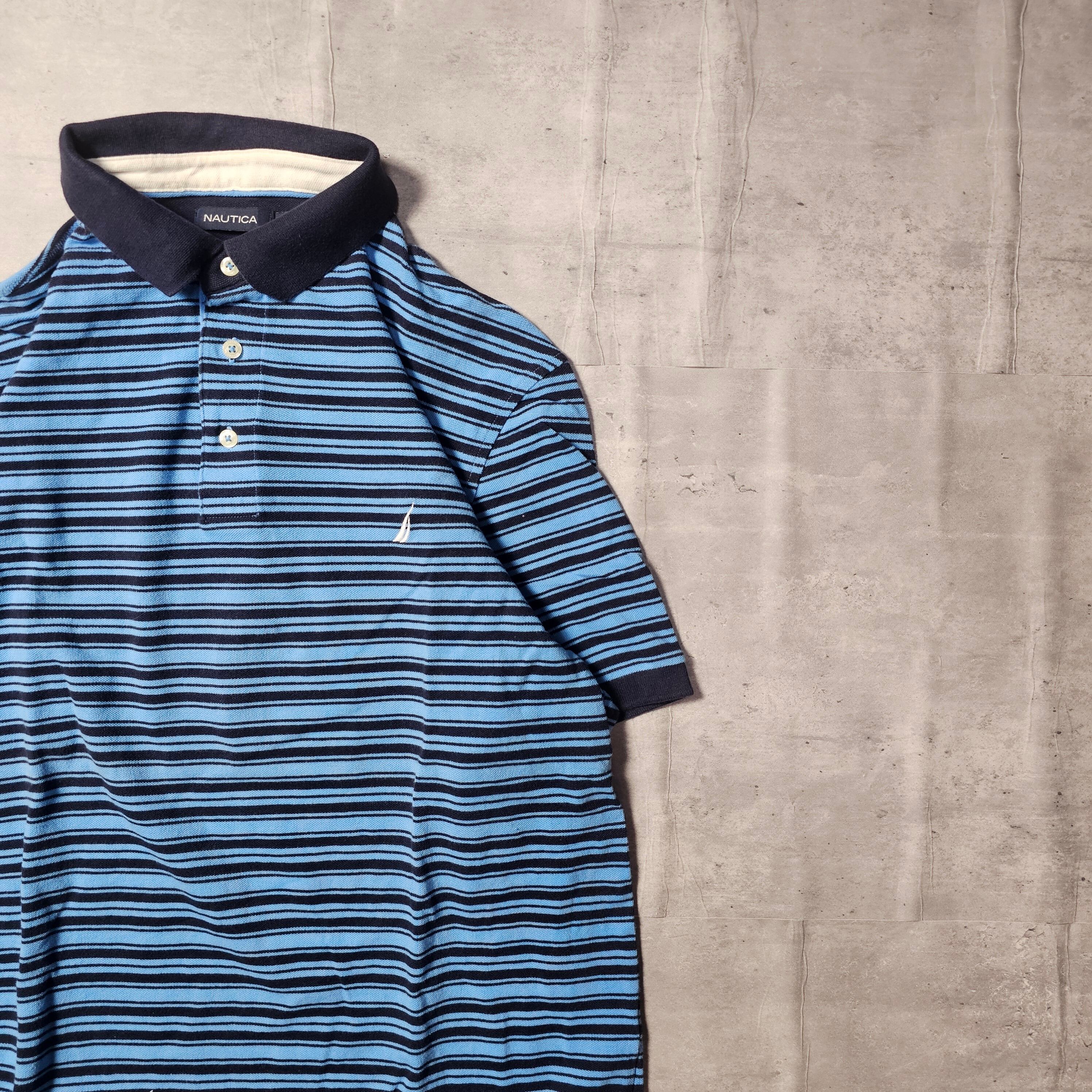 『 NAUTICA / ノーティカ 』 ベーシックボーダーポロシャツ ( Lサイズ ) ネイビー色