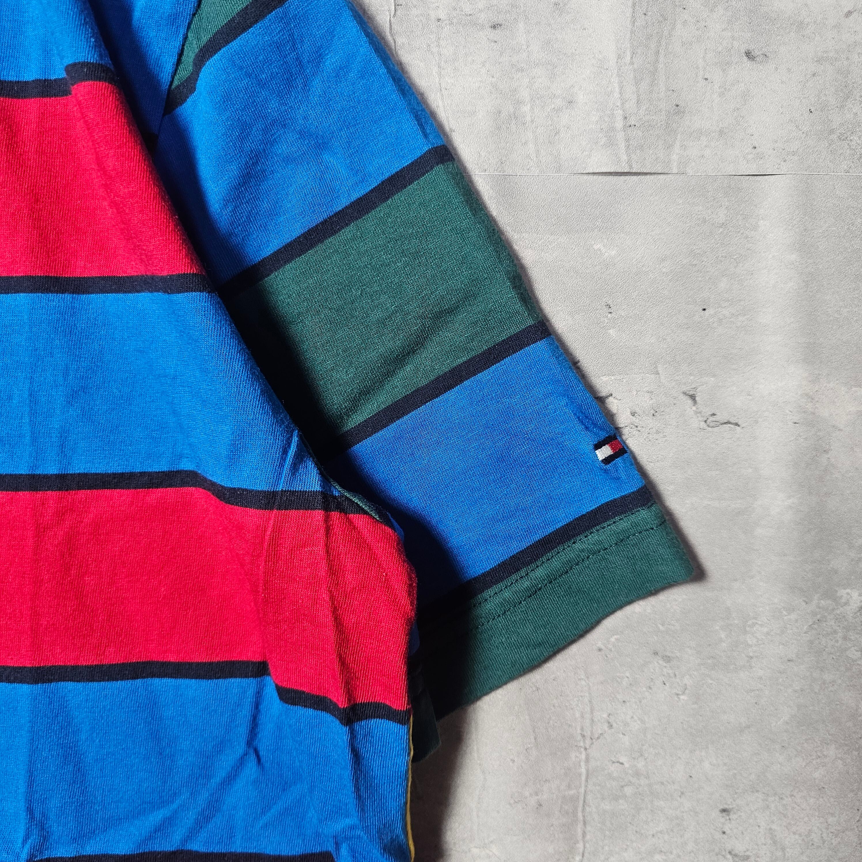 ぜひ、このTOMMY HILFIGERクレイジーパターンボーダーTシャツをあなたのワードローブに加えて、独自のスタイルを楽しんでください!