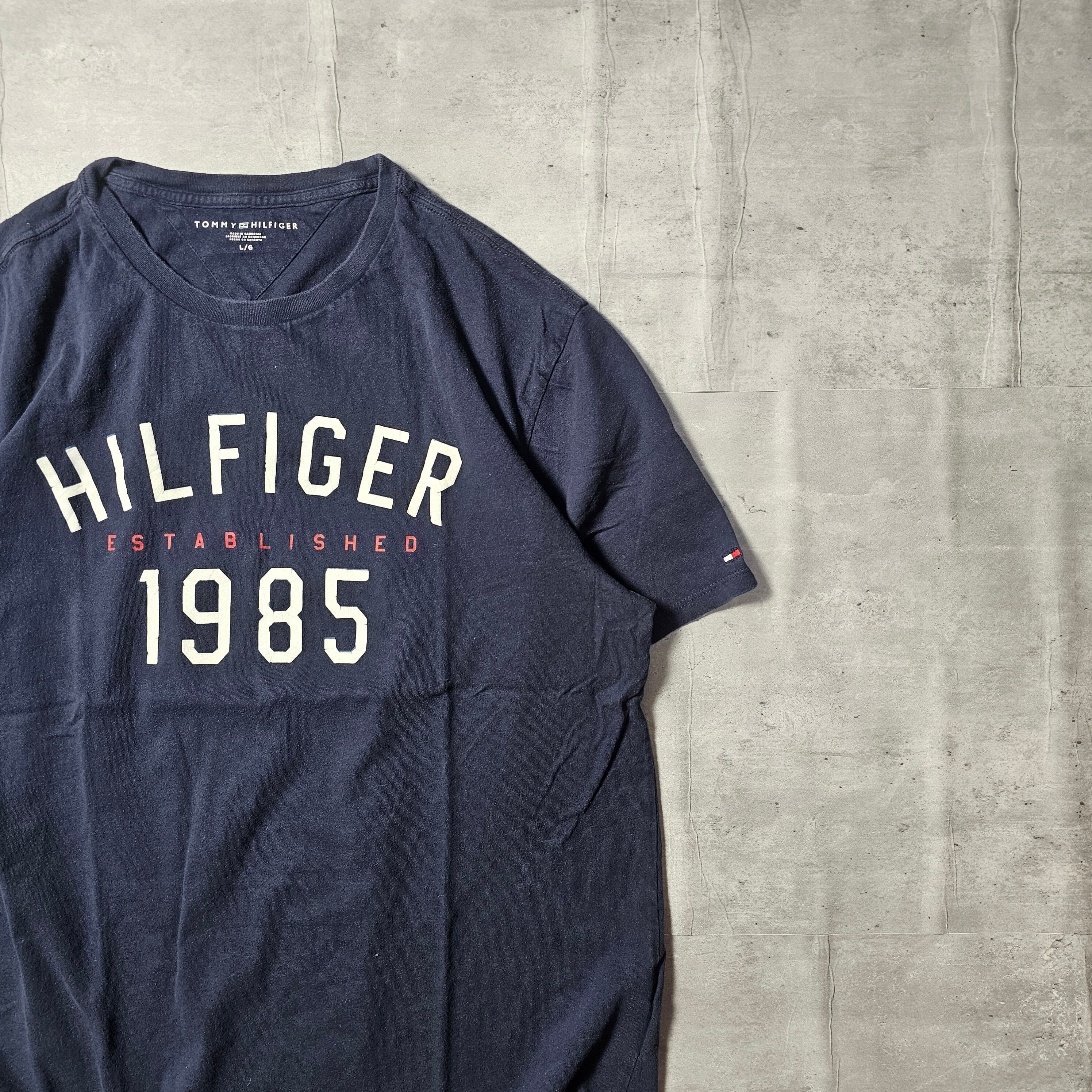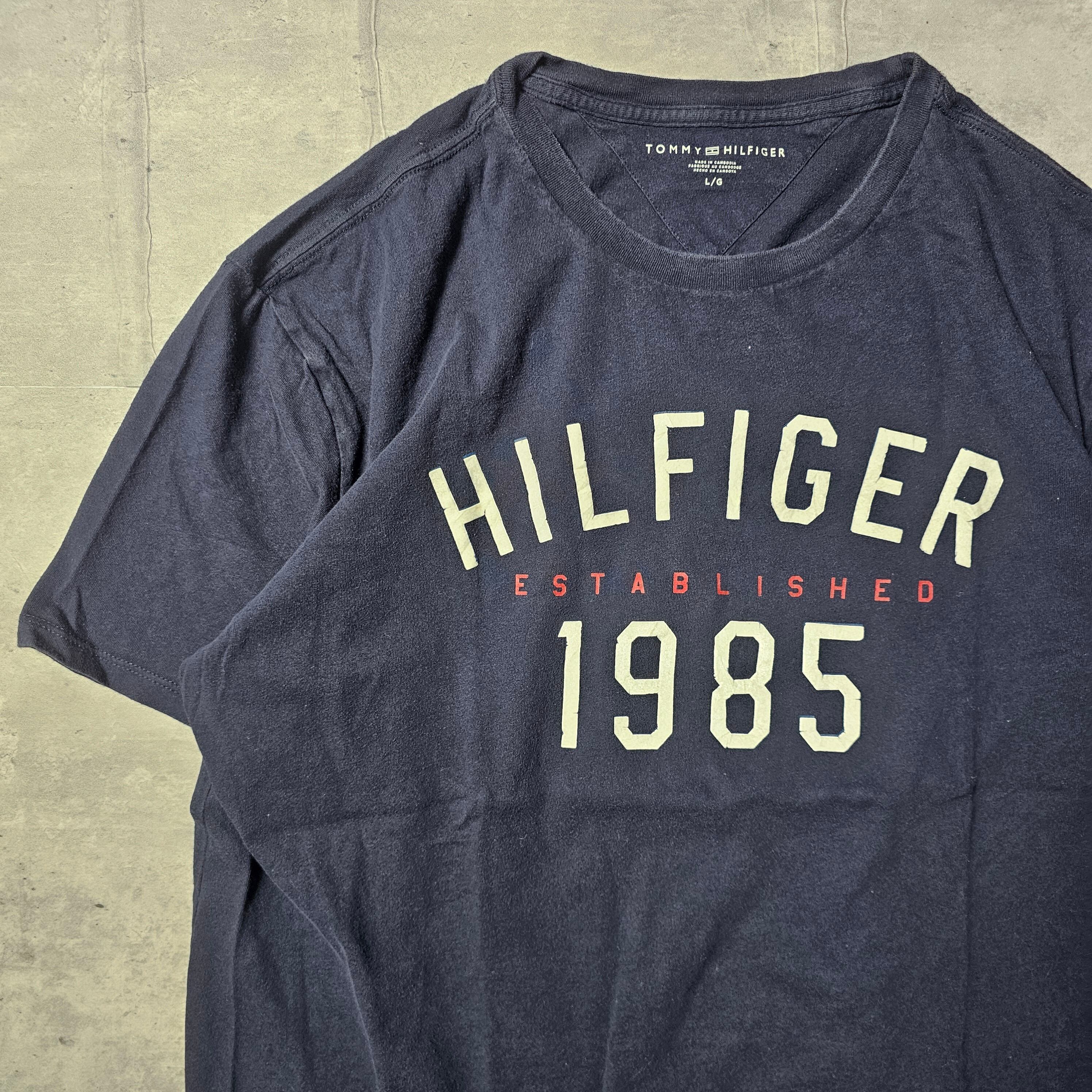 【『TOMMY HILFIGER』 ロゴTシャツ (Lサイズ) ネイビー色】