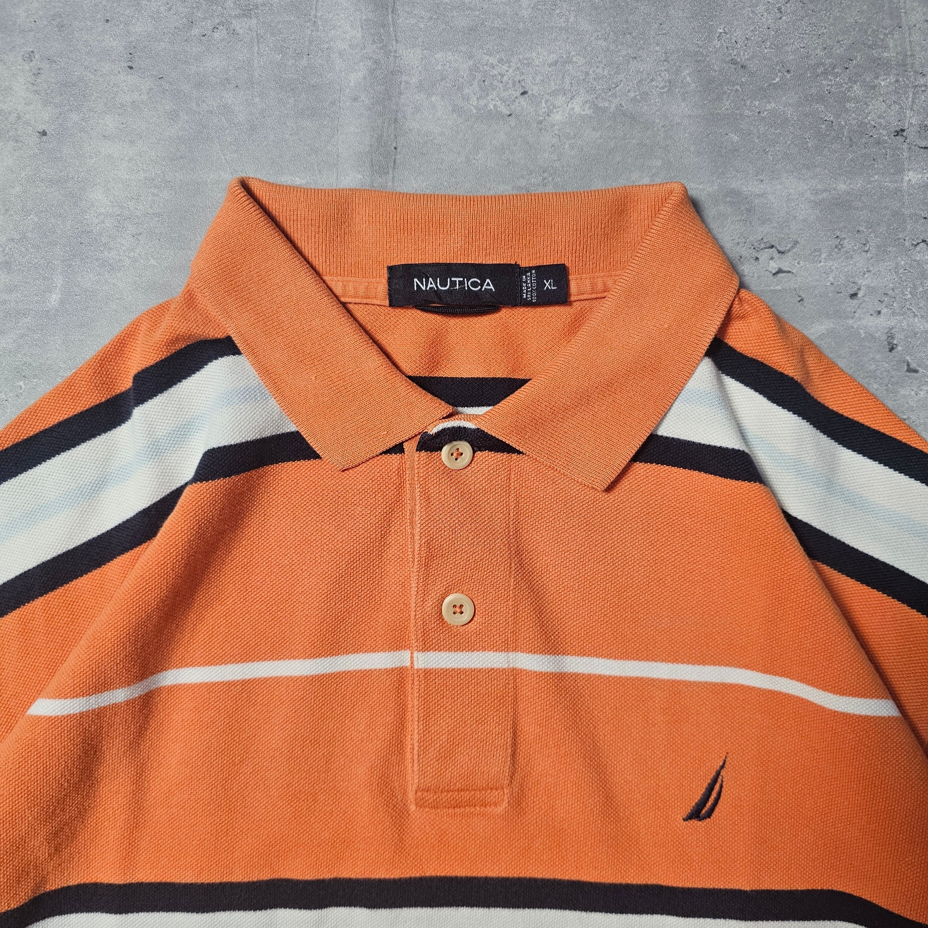 『 NAUTICA / ノーティカ 』ボーダーポロシャツ ( XLサイズ ) オレンジ色