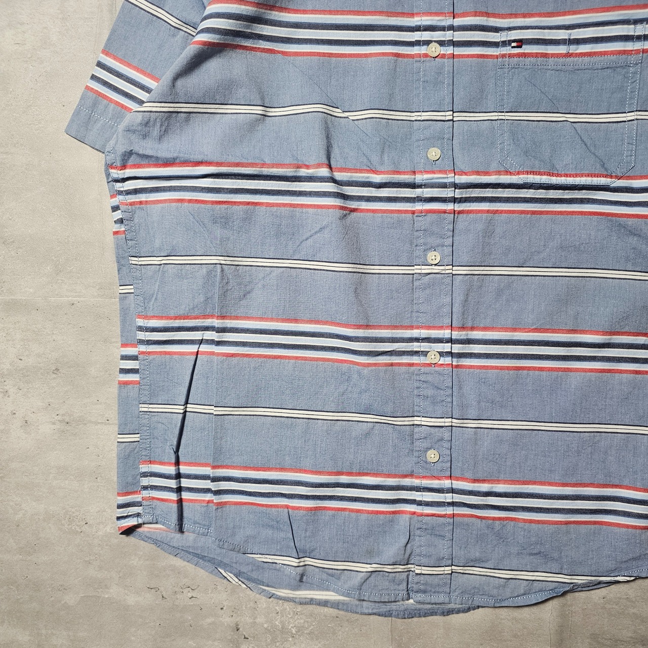 『 TOMMY HILFIGER / トミーヒルフィガー 』 BDボーダー柄シャツ ( Lサイズ ) インディゴ色