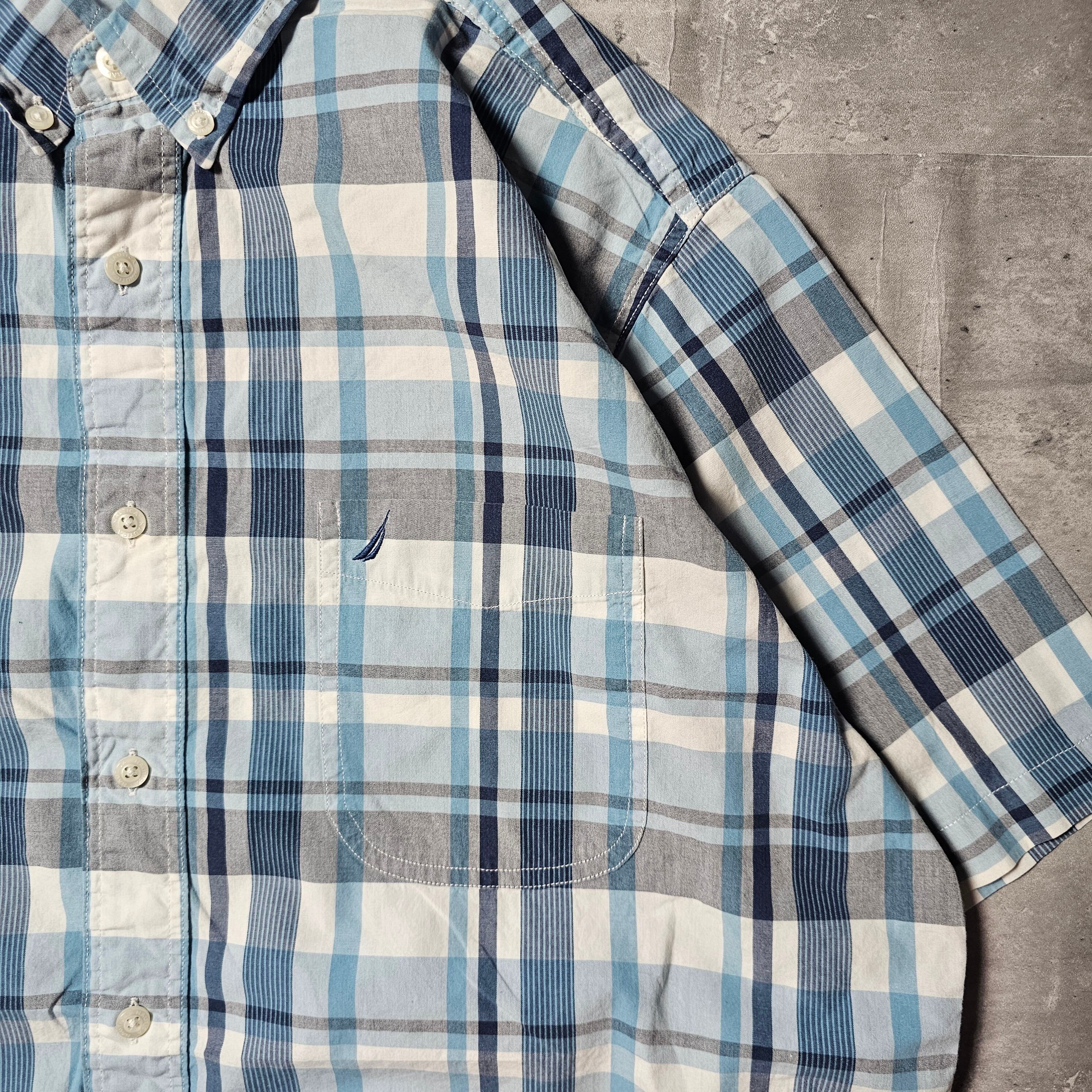 【『 NAUTICA / ノーティカ 』 BD チェック柄シャツ ( XLサイズ ) ブルー色】