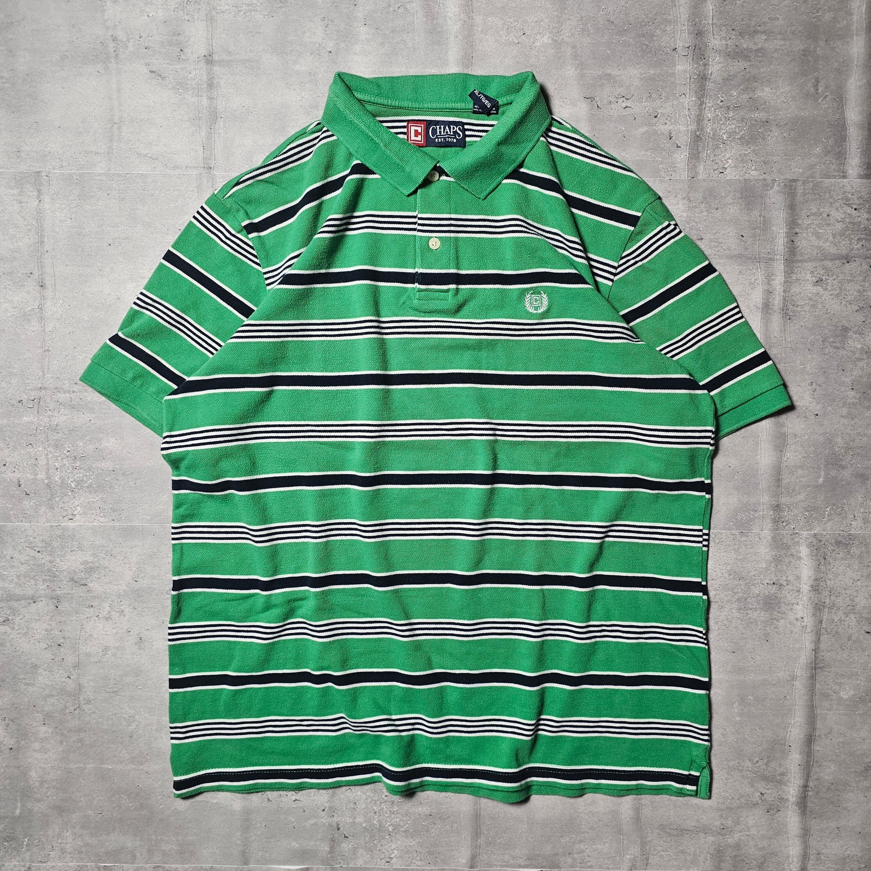 『 CHAPS / チャップス 』 ボーダー柄ポロシャツ ( XLサイズ ) グリーン色