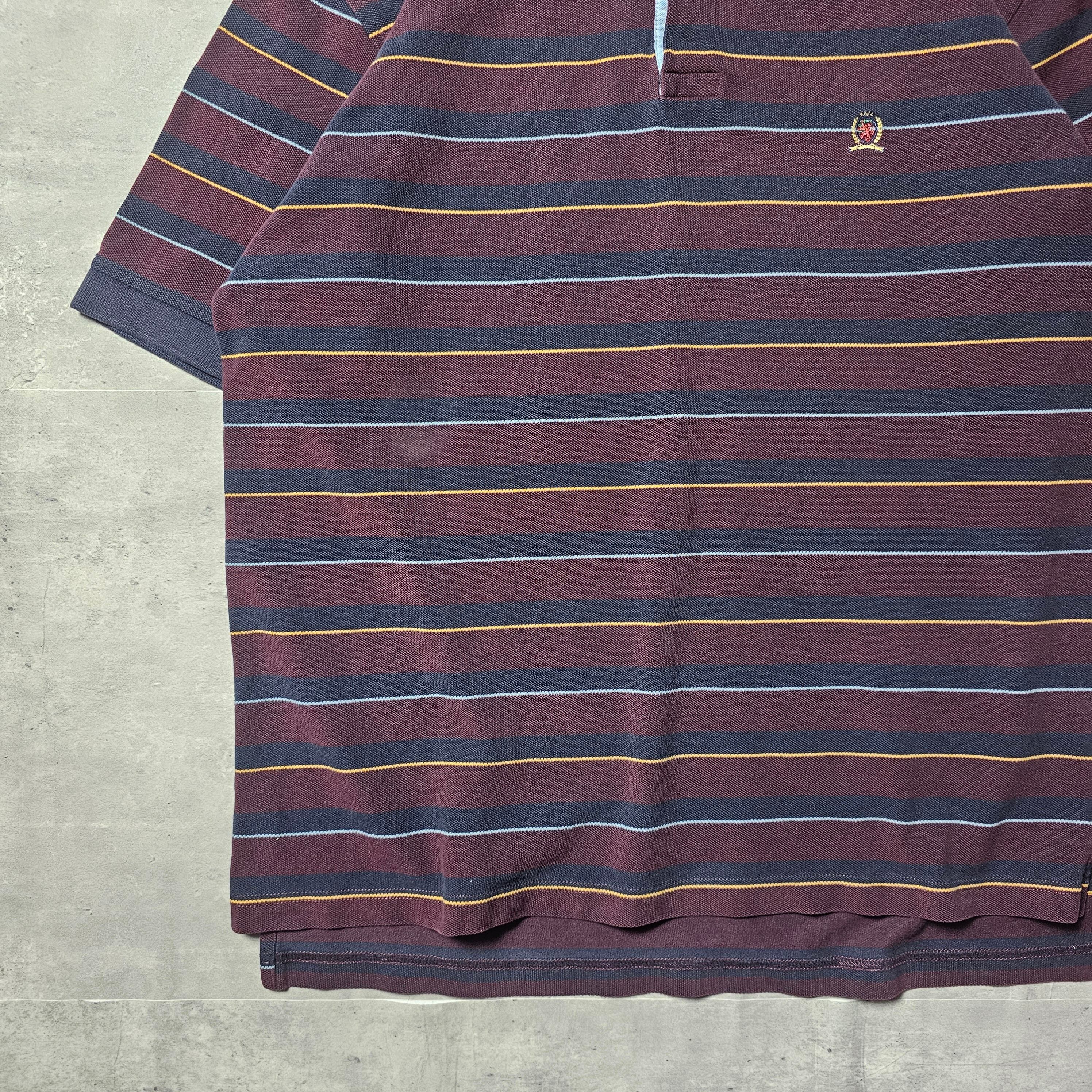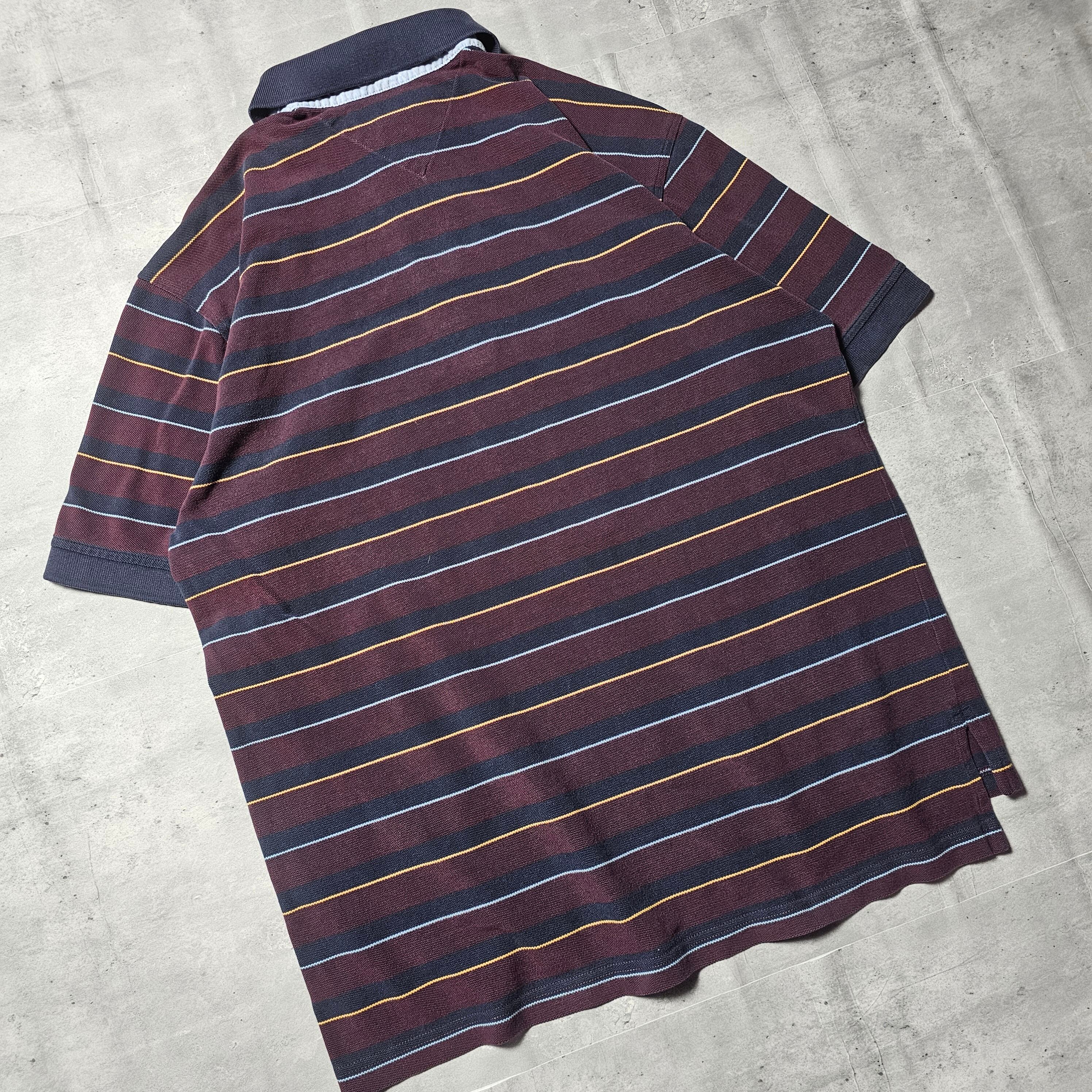 『 TOMMY HILFIGER / トミーヒルフィガー 』 ボーダー柄ポロシャツ / Lサイズ / ワインレッド色