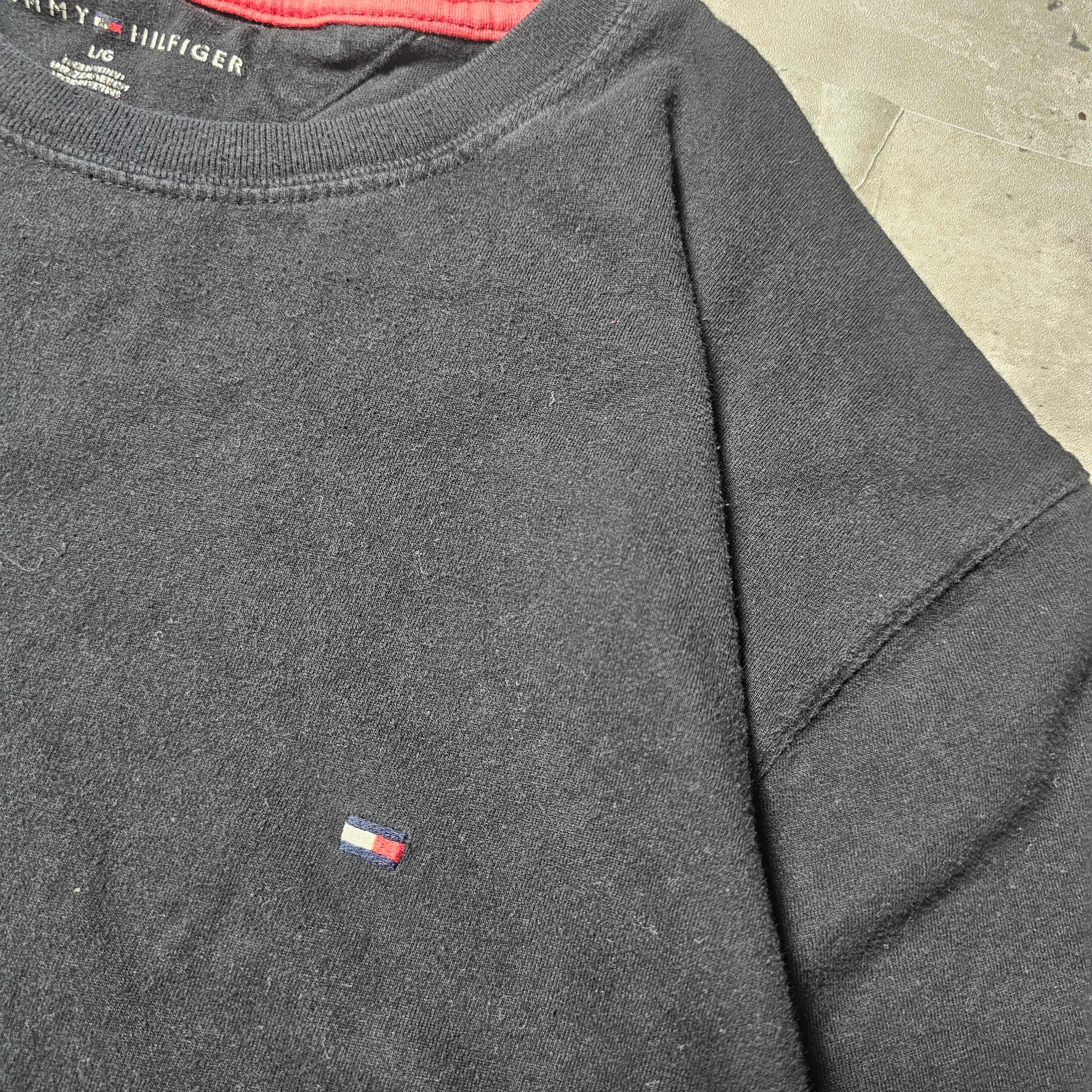 【『TOMMY HILFIGER / トミーヒルフィガー』ロゴ刺繍Tシャツ (Lサイズ) ブラック色】