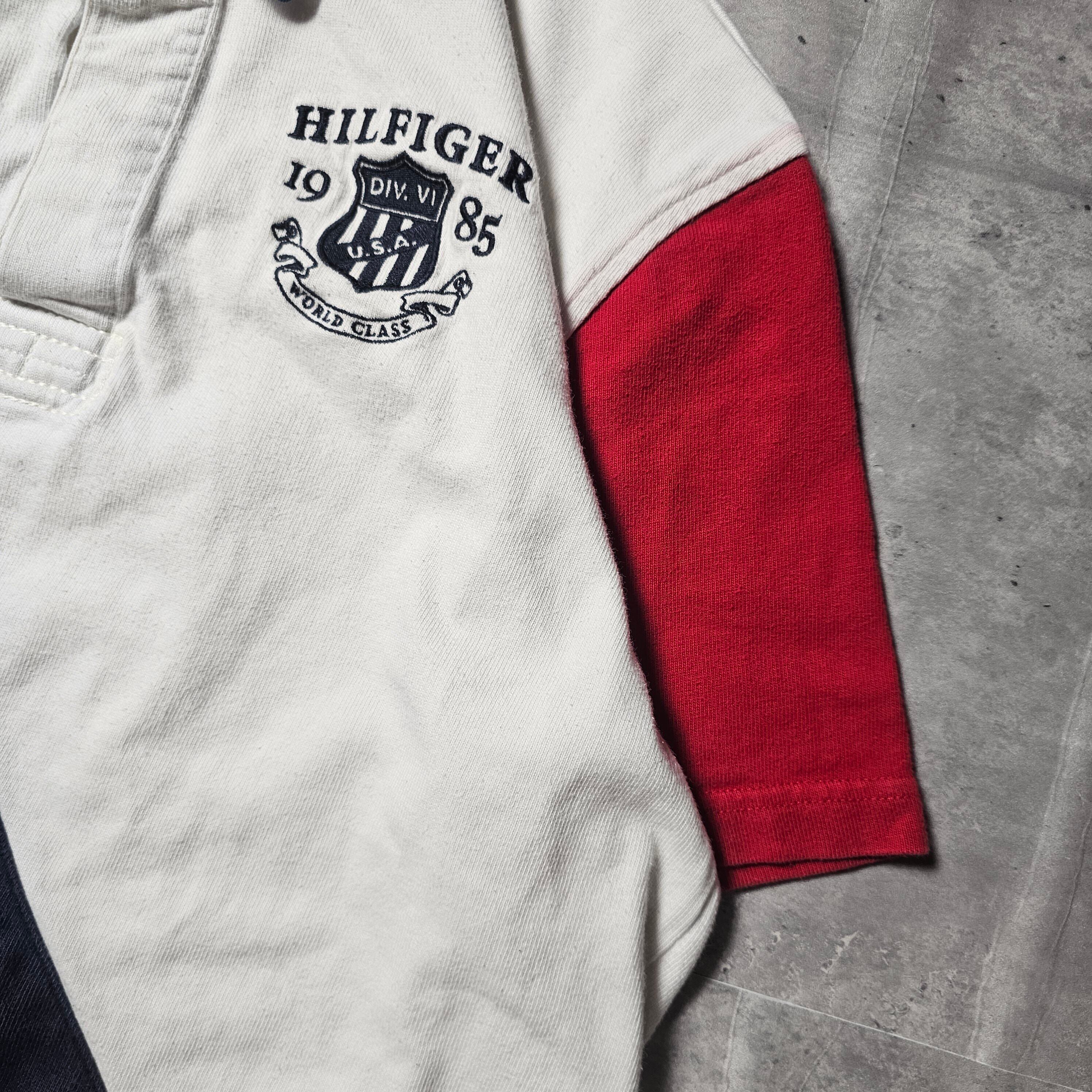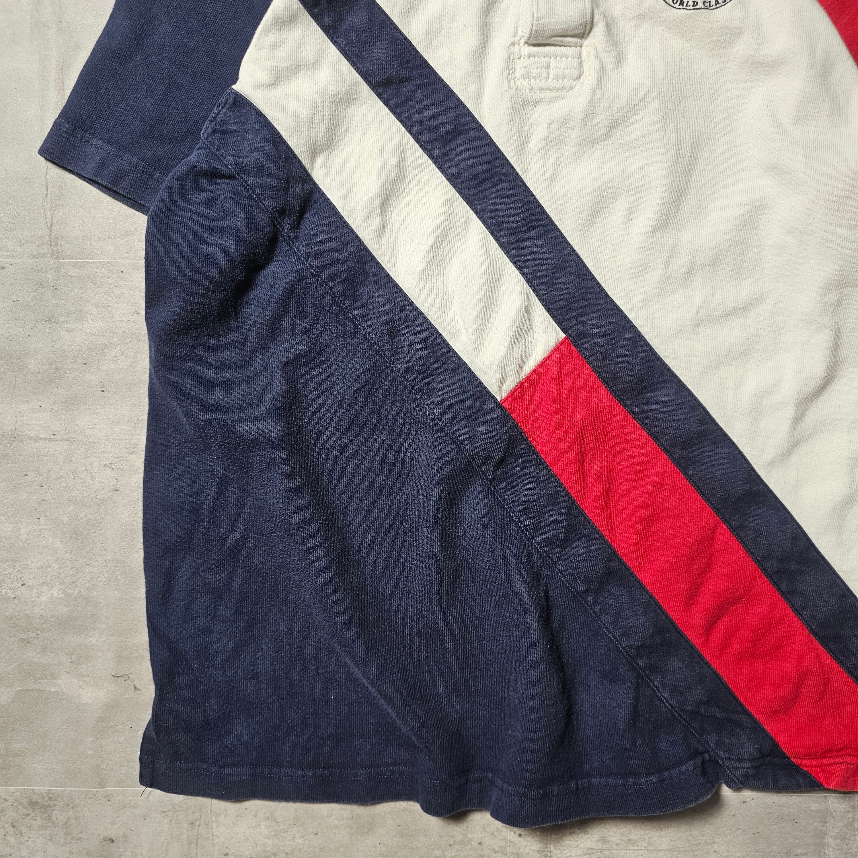 【『TOMMY HILFIGER / トミーヒルフィガー』切り替えポロシャツ (Lサイズ) ホワイト&ネイビー色】