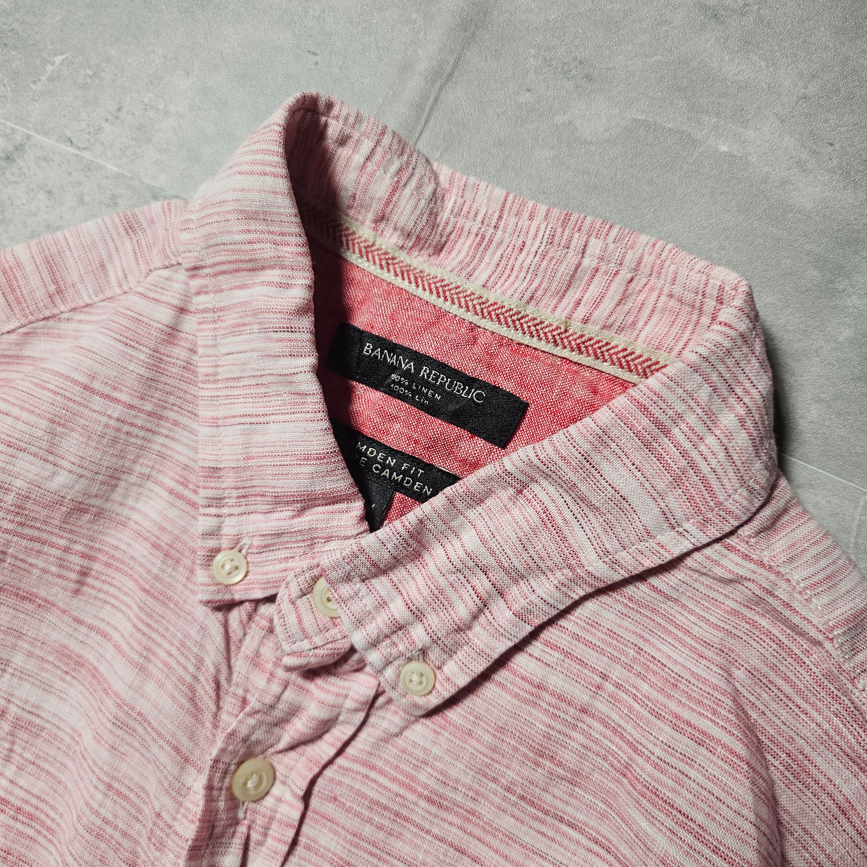【『BANANAREPUBLIC / バナナリパブリック』 BD リネン柄シャツ (Mサイズ) レッド色】