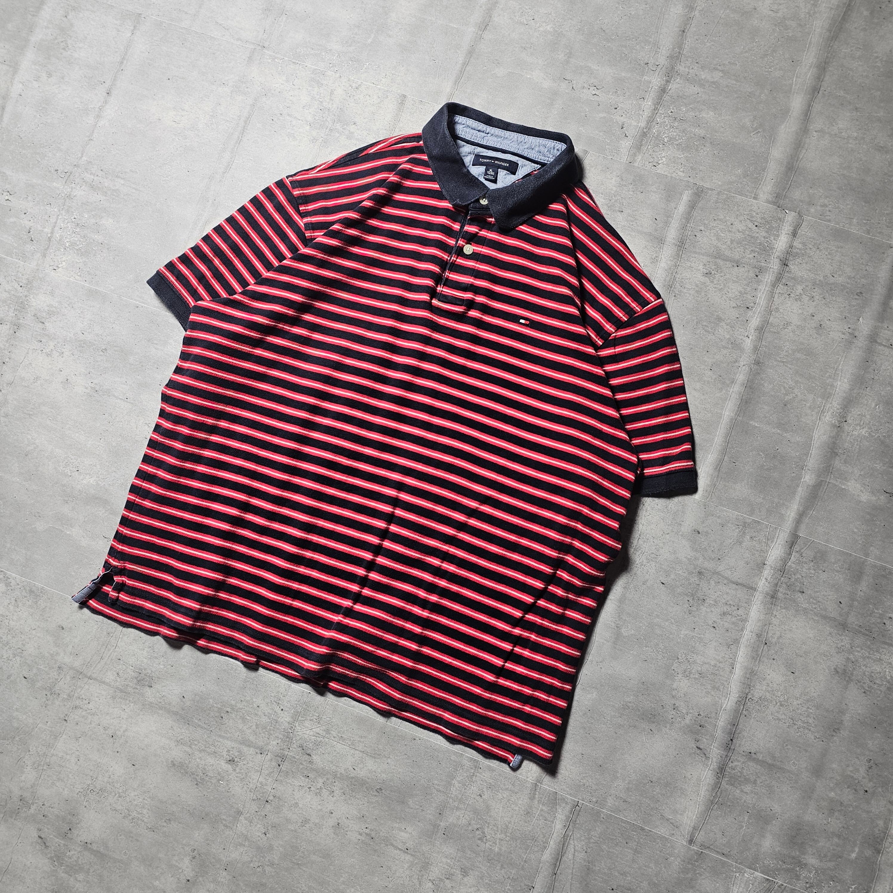 【『TOMMY HILFIGER / トミーヒルフィガー』 ボックスシルエットボーダー柄ポロシャツ (XLサイズ) ブラック色】