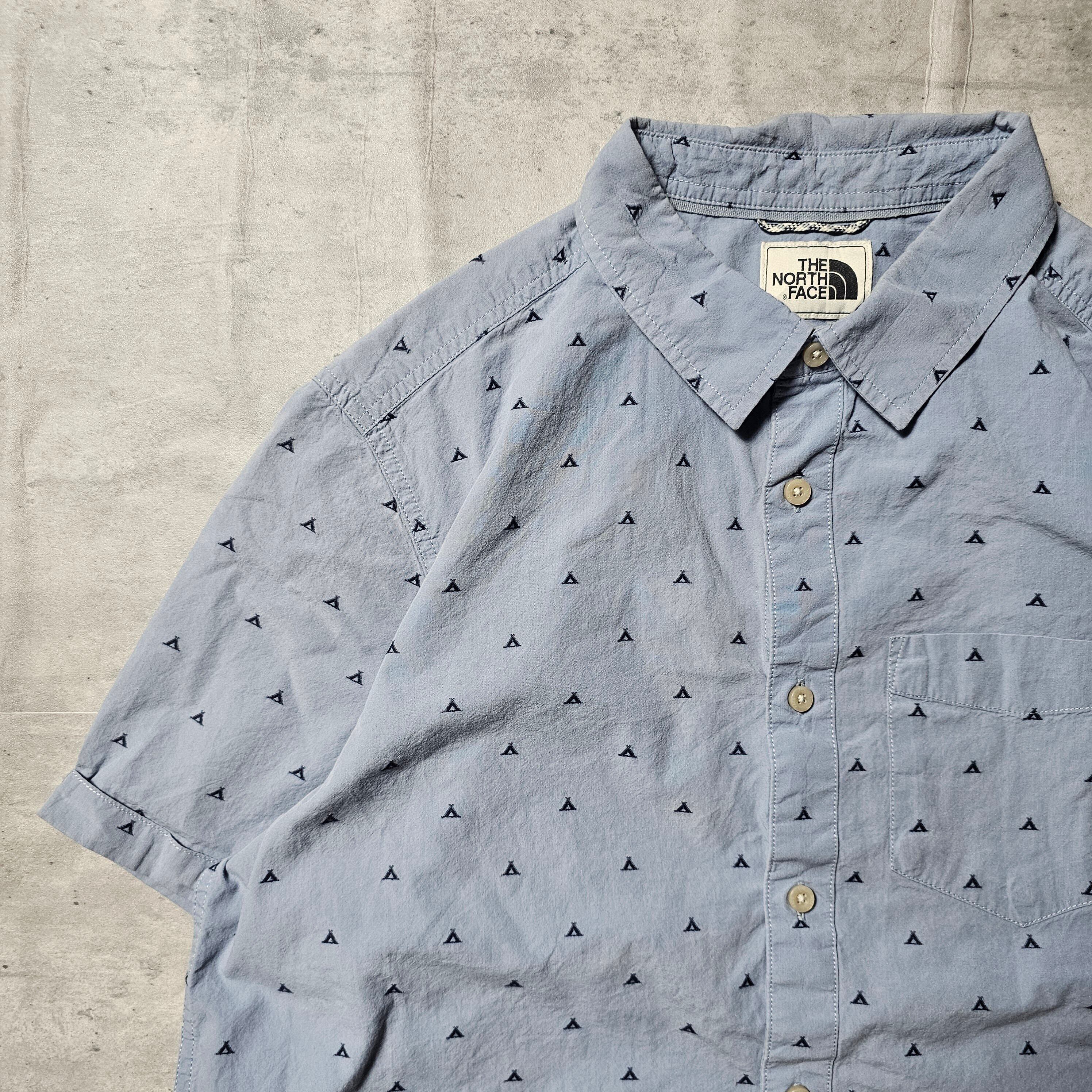 【『THE NORTH FACE / ザ・ノースフェイス』 柄シャツ Lサイズ サックス色】