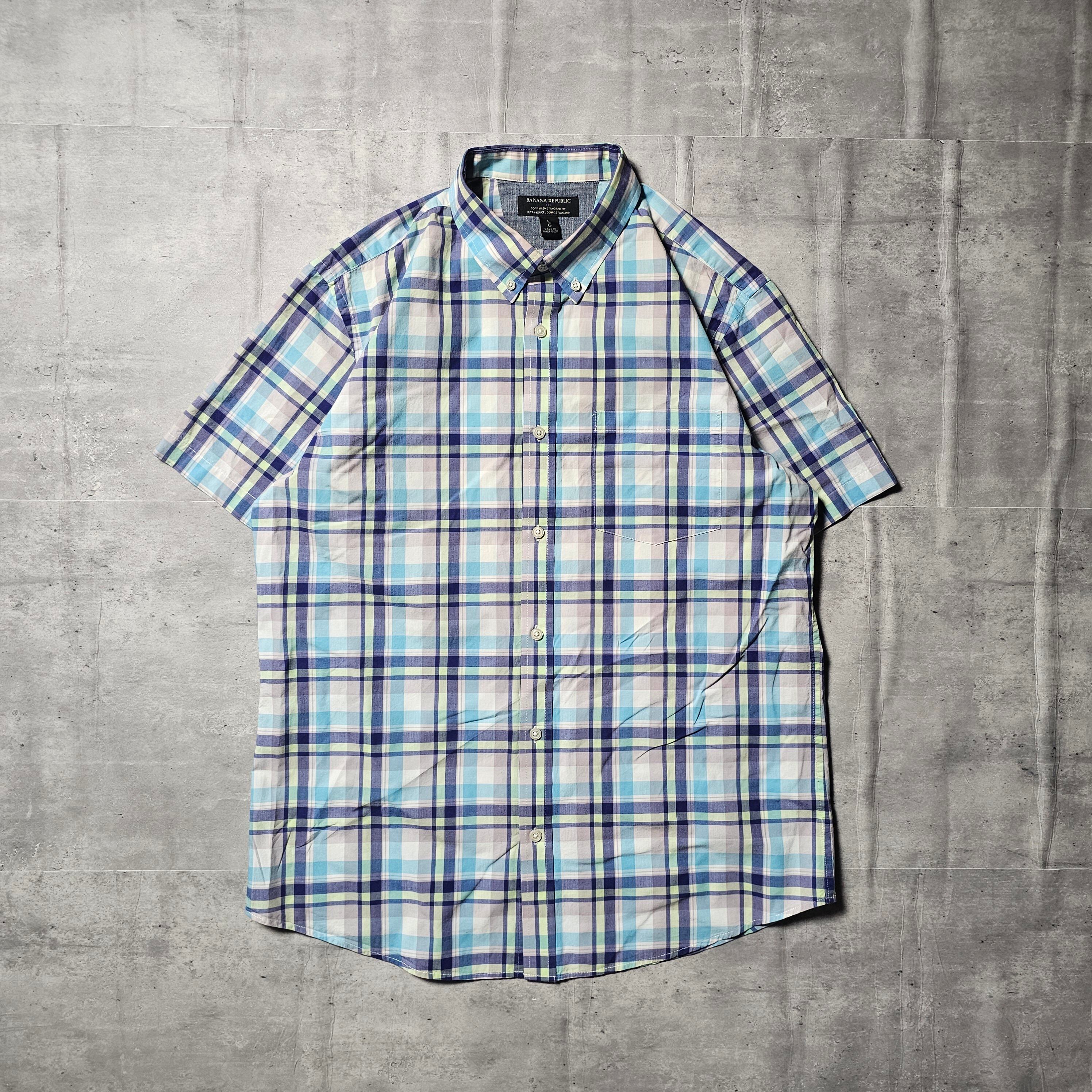 【『BANANAREPUBRIC / バナナリパブリック』 BDチェックシャツ (Lサイズ) ブルー色】