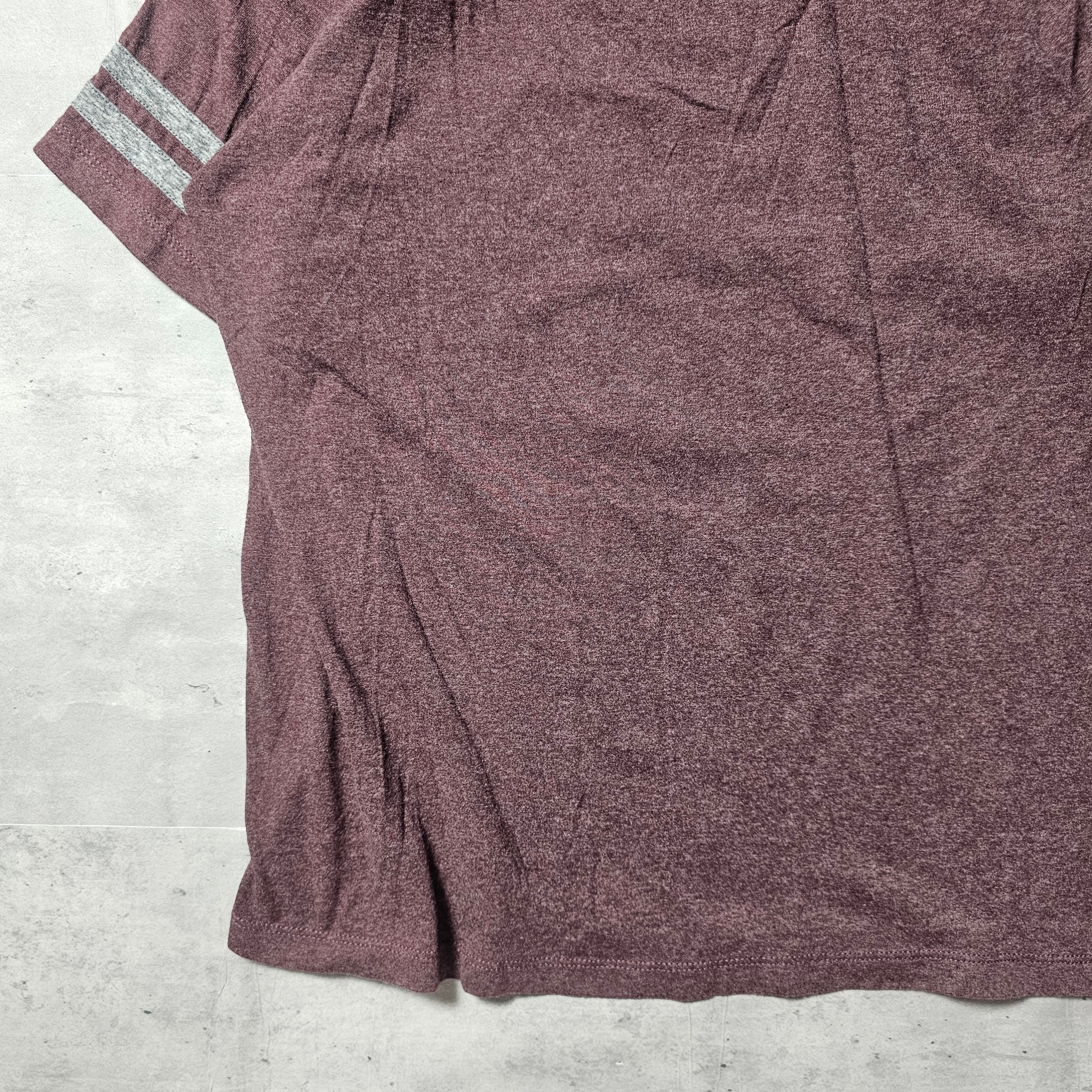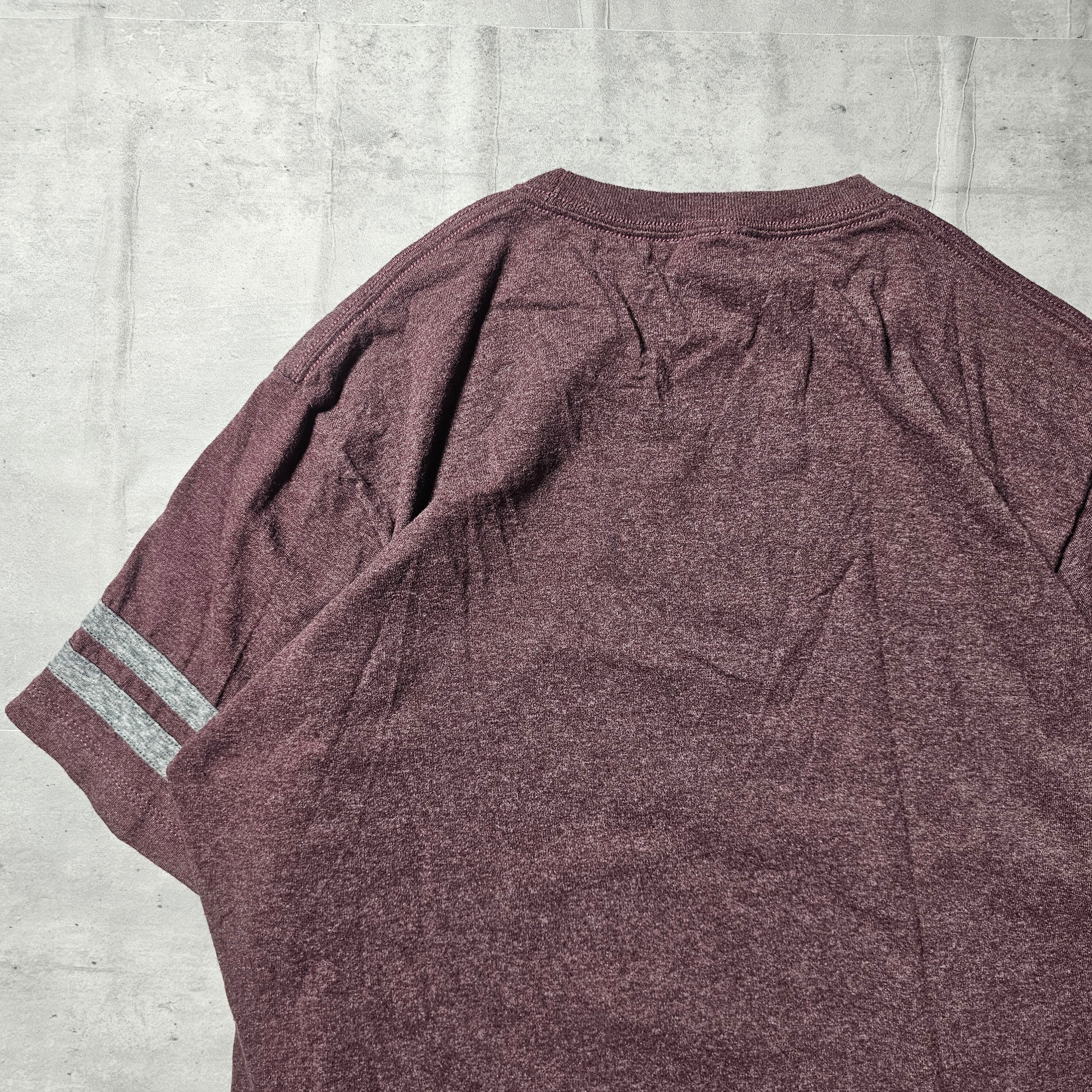 フットボールTシャツをイメージしたデザインと、霜降りがかったワインレッド色が絶妙に組み合わさり、落ち着いた印象を与えてくれます。