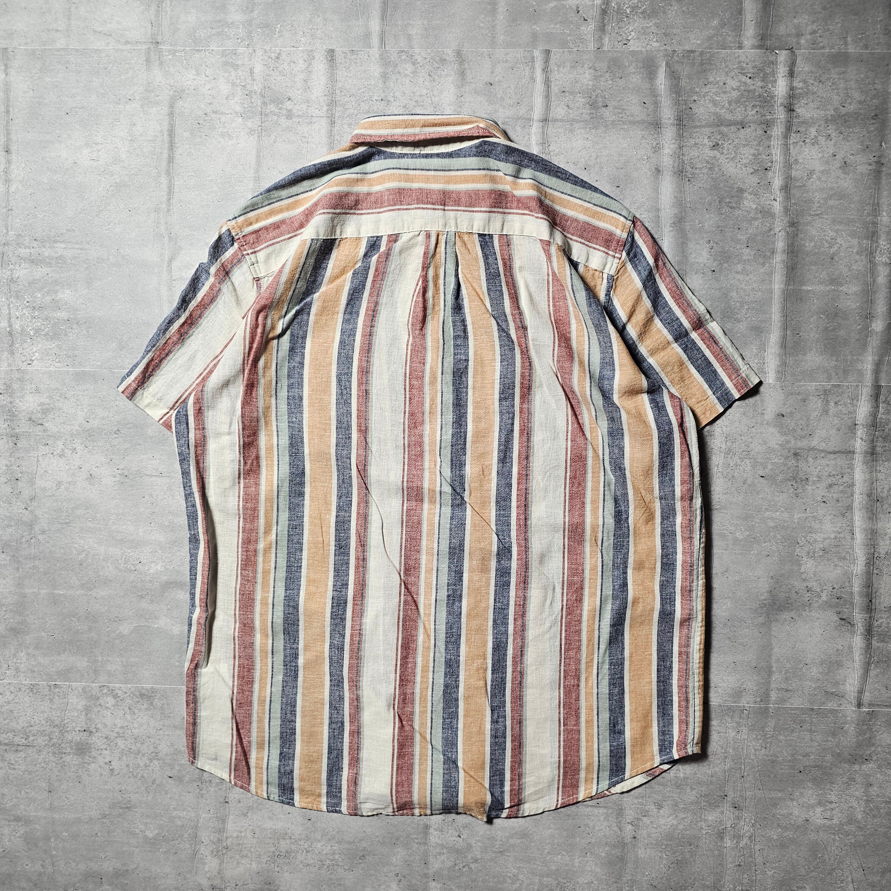 『 GAP / ギャップ 』 リネンストライプシャツ / Lサイズ / オレンジ色