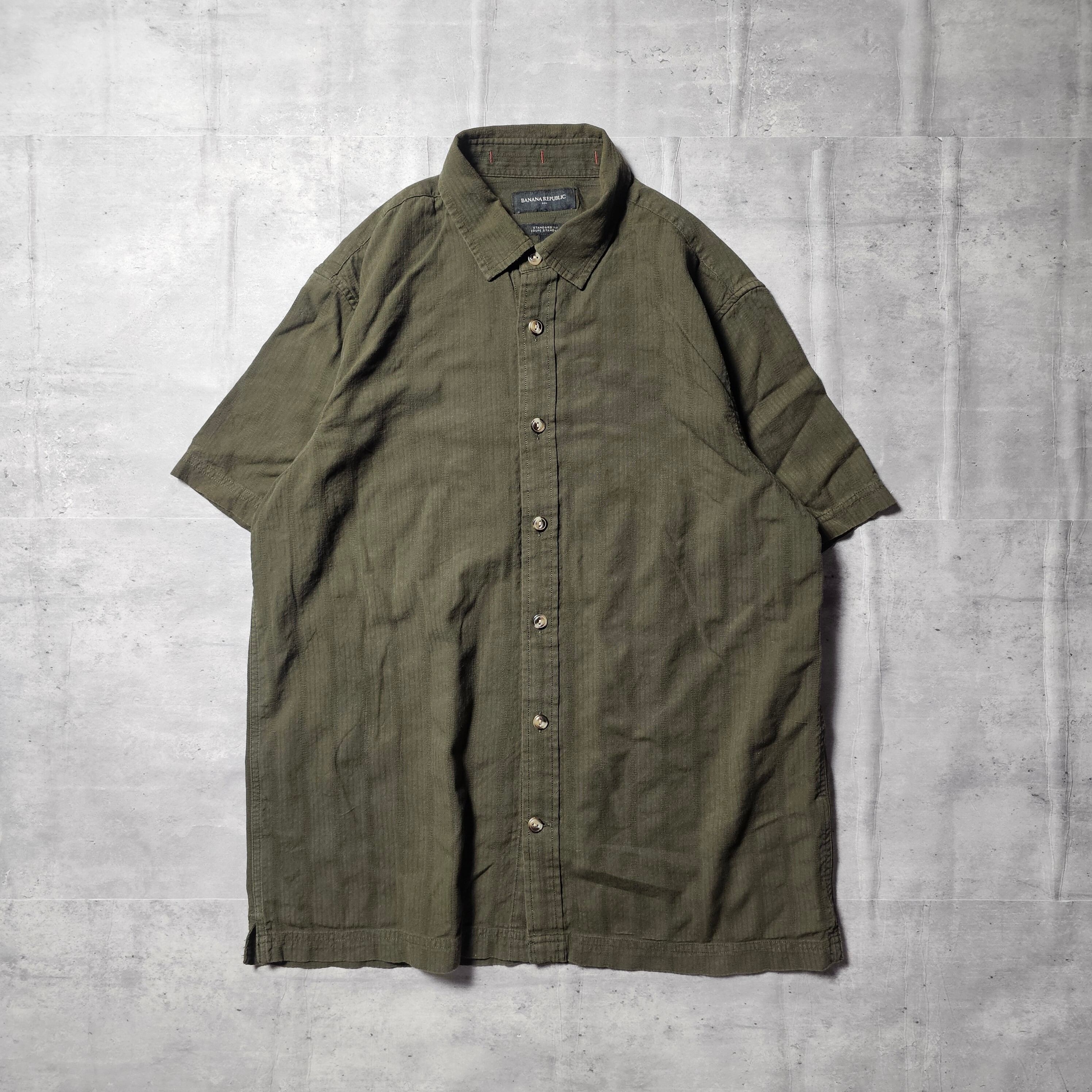 『 BANANAREPUBRIC / バナナリパブリック 』 ジャガードストライプシャツ / Mサイズ / オリーブ色