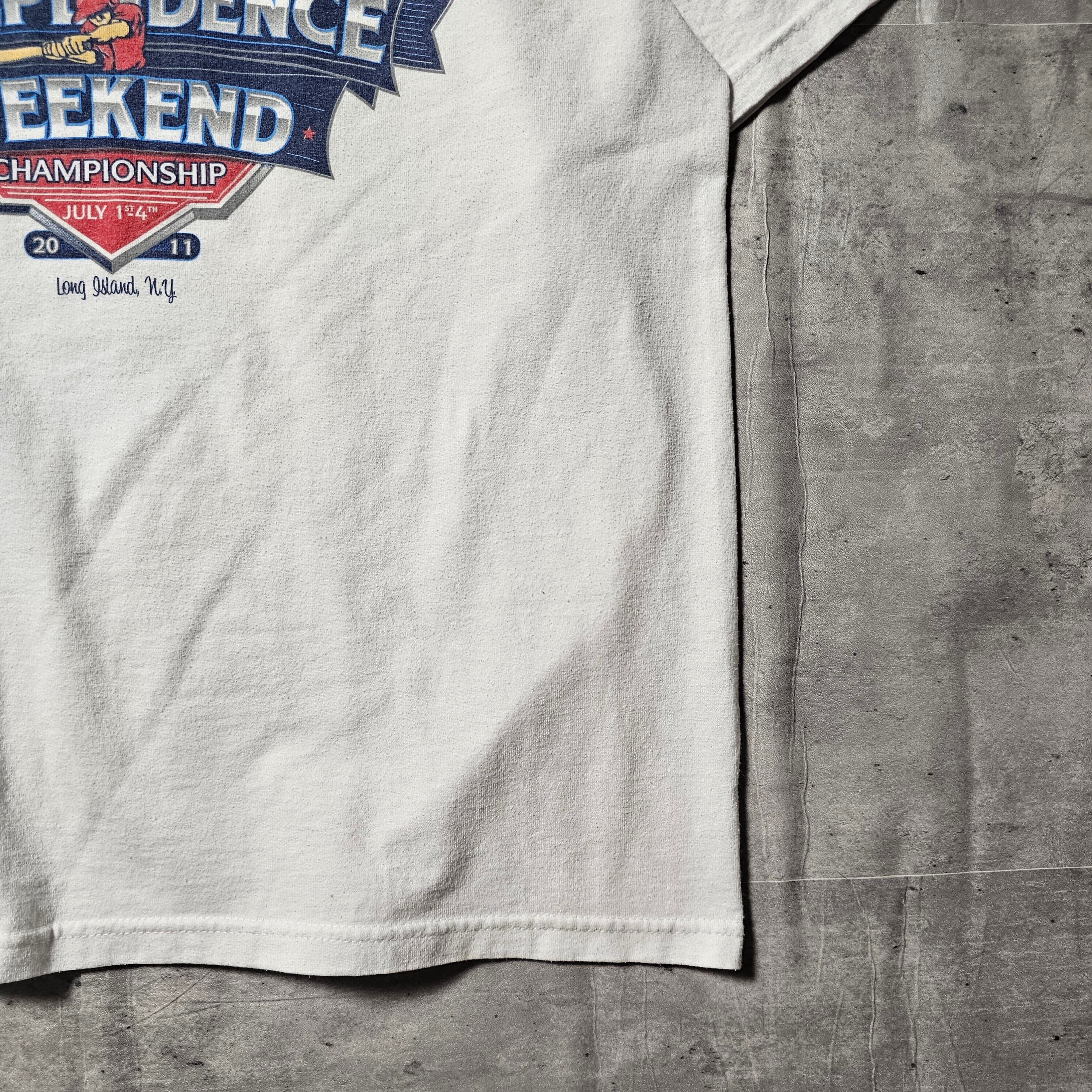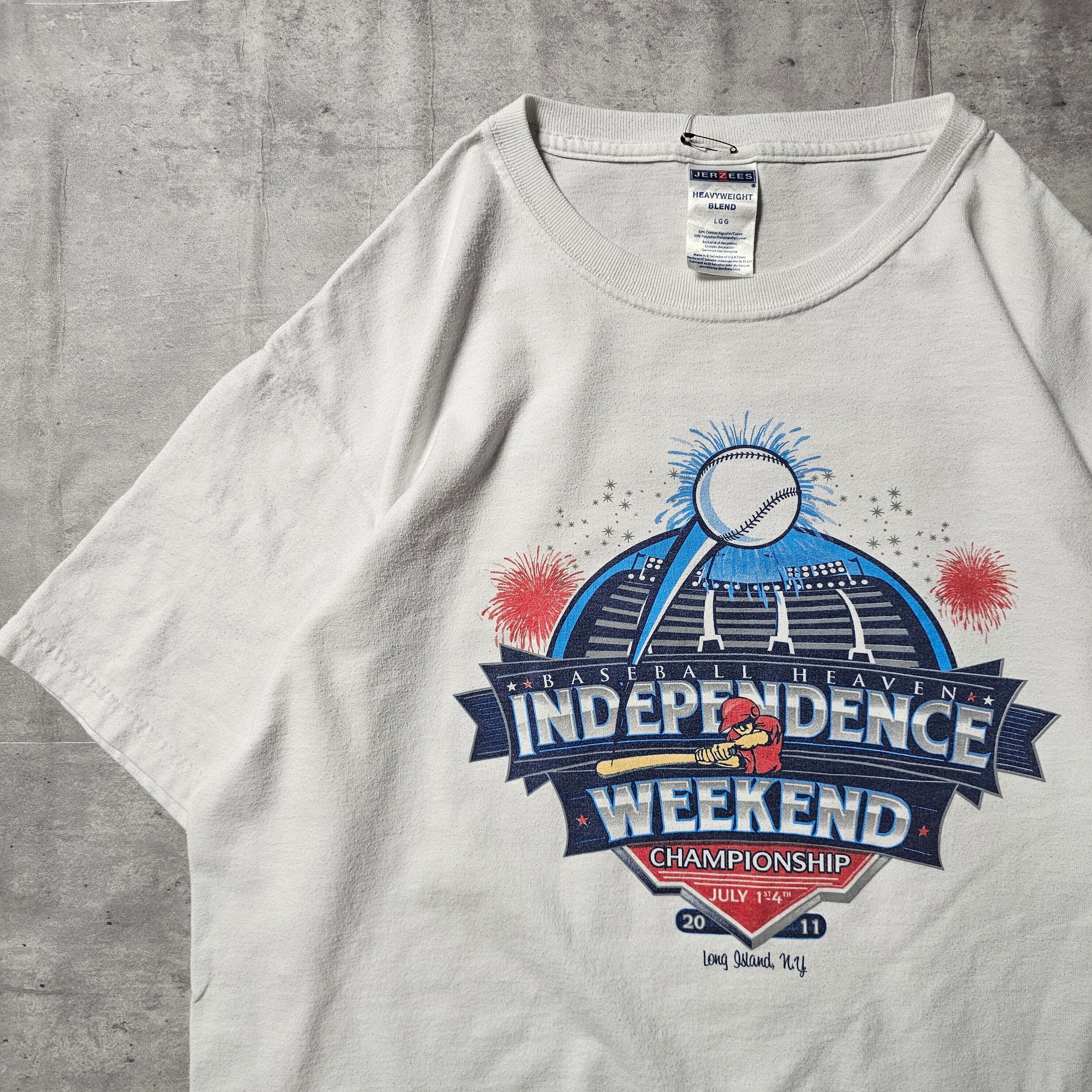 このTシャツは、爽やかなホワイトを基にしたデザインで、アメリカの独立記念日に開催されるイベント「BASEBALL HEAVEN INDEPENDENT WEEKEND CHAMPIONSHIP」の特別な一枚です。