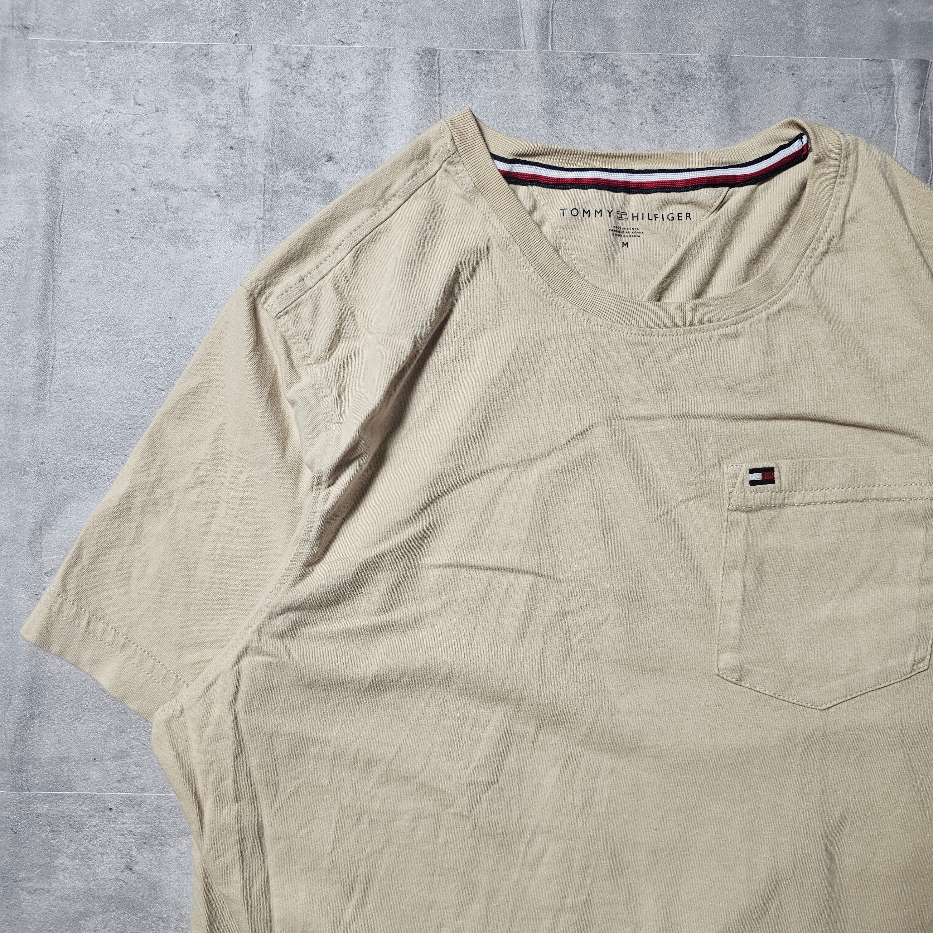 【『TOMMY HILFIGER / トミーヒルフィガー』 ロゴ刺繍ポケットTシャツ (Mサイズ) ベージュ色】