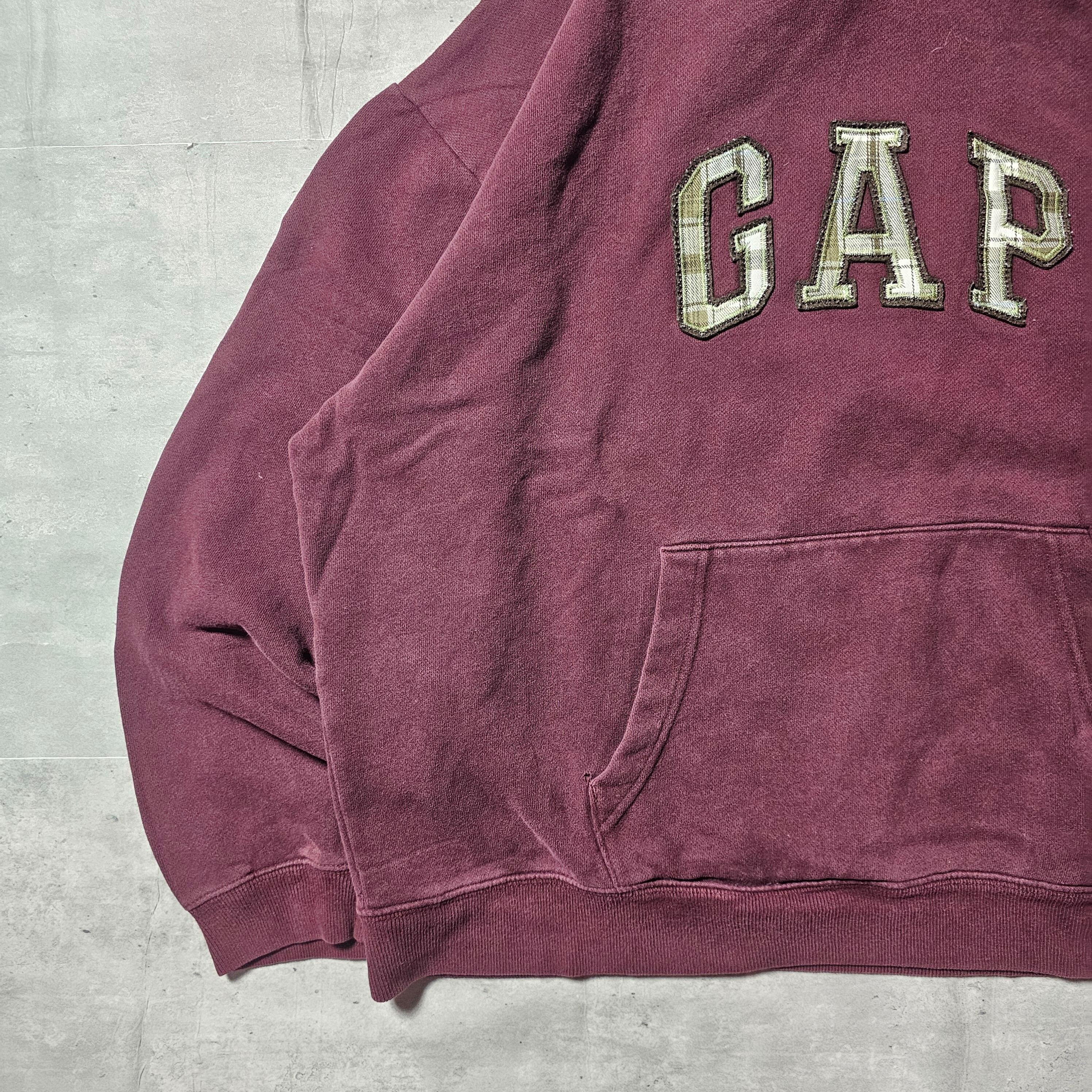 『 GAP / ギャップ 』 チェックワッペンロゴプルオーバーパーカー / XLサイズ / バーガンディー色
