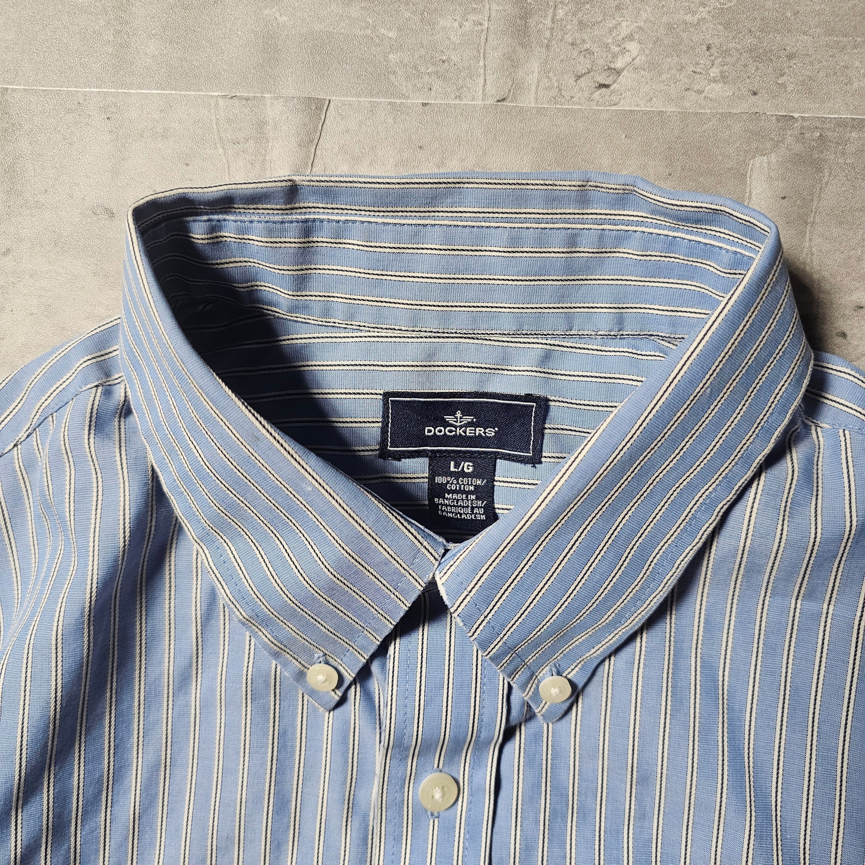 【『DOCKERS / ドッカーズ』 BDストライプシャツ / Lサイズ / ブルー色】