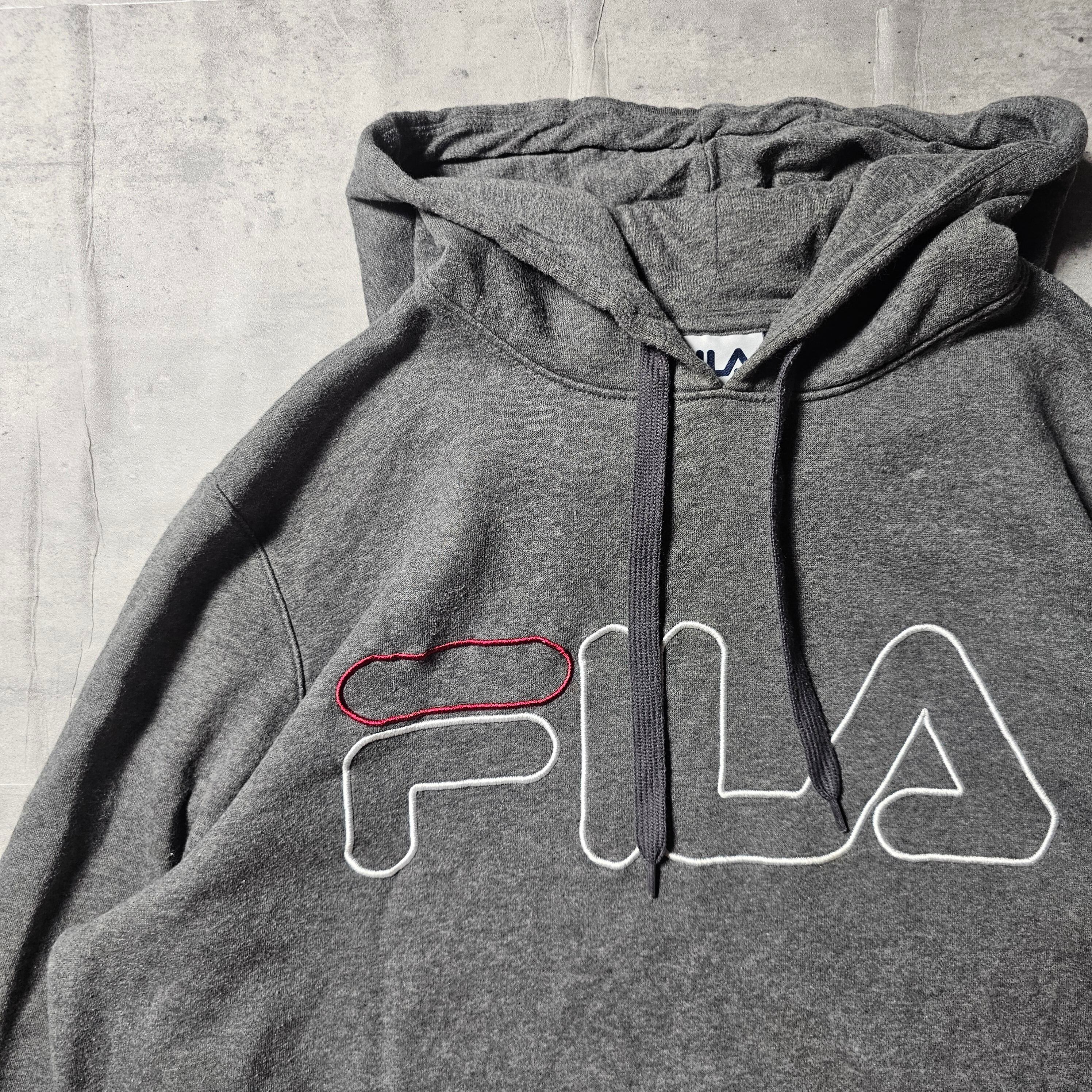 【『FILA / フィラ』 ロゴ刺繍パーカー / Lサイズ / グレー色】