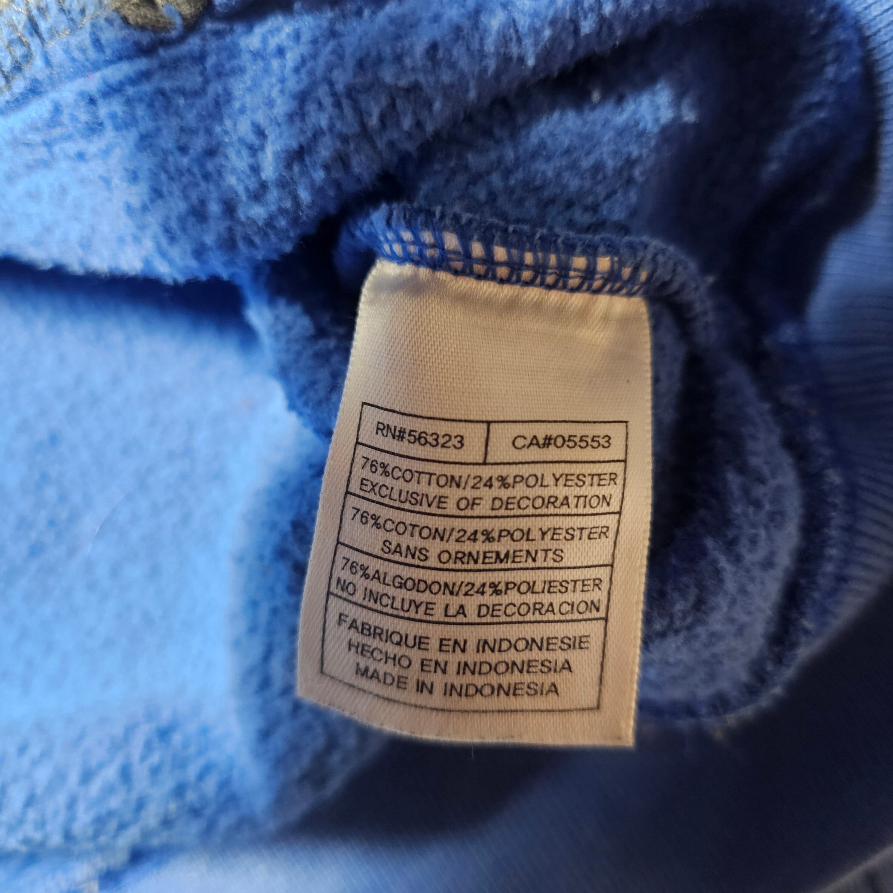 このブルー色のパーカーは、コットン76%、ポリエステル24%の混合生地を使用しており、柔らかく肌触りも良好です。