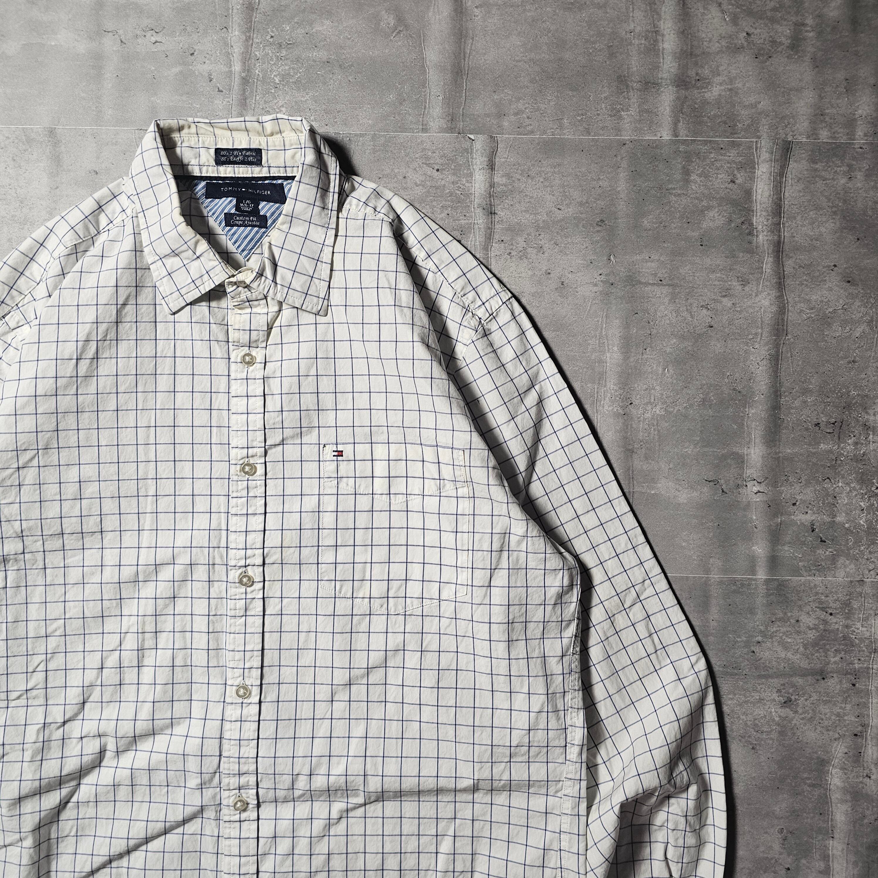 【『TOMMY HILFIGER / トミーヒルフィガー』 チェックシャツ / Lサイズ / ホワイト色】