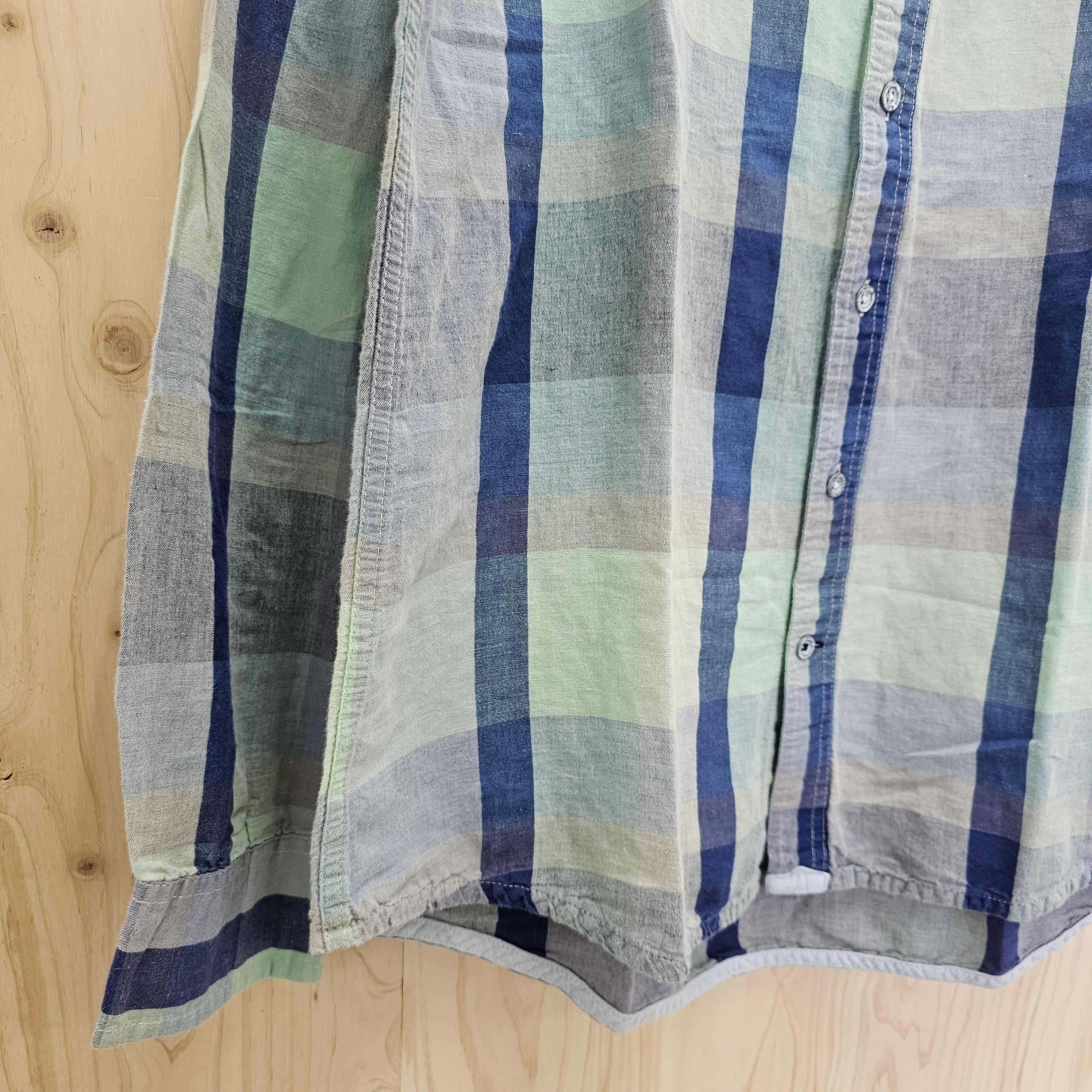 【『TOMMY HILFIGER / トミーヒルフィガー』 BDリネンチェックシャツ / XXLサイズ / グリーン色】