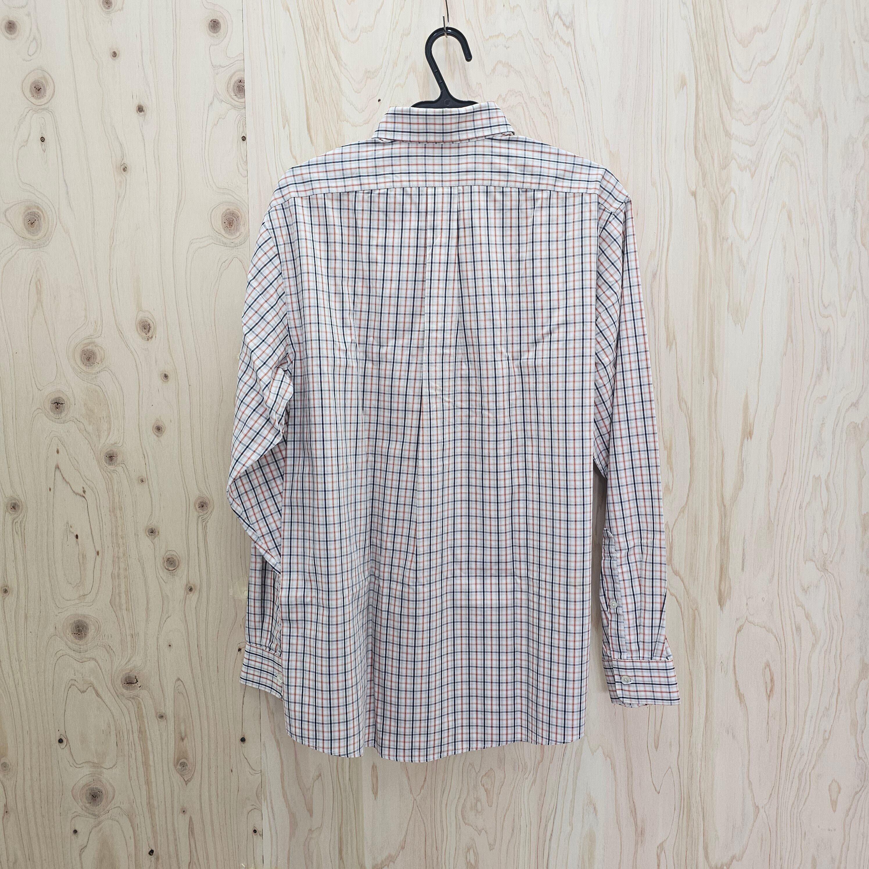 このシャツは、ネイビー色とレッド色で作られたチェック柄がデザインされており、お洒落さを引き立ててくれます。