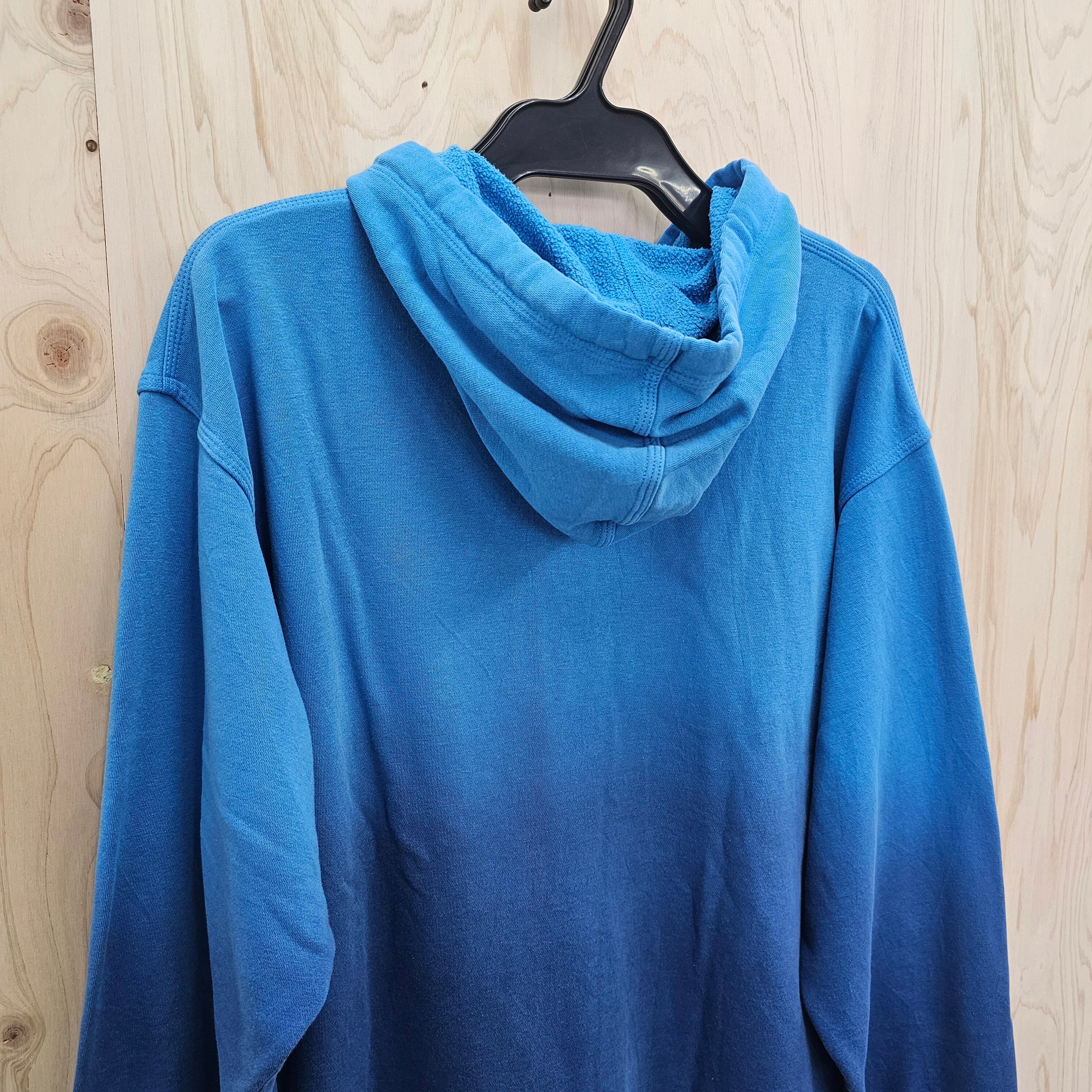 このネイビー色のパーカーは、ブルーとネイビーが大胆にグラデーションされたデザインが特徴で、一枚でお洒落な印象を与えます。