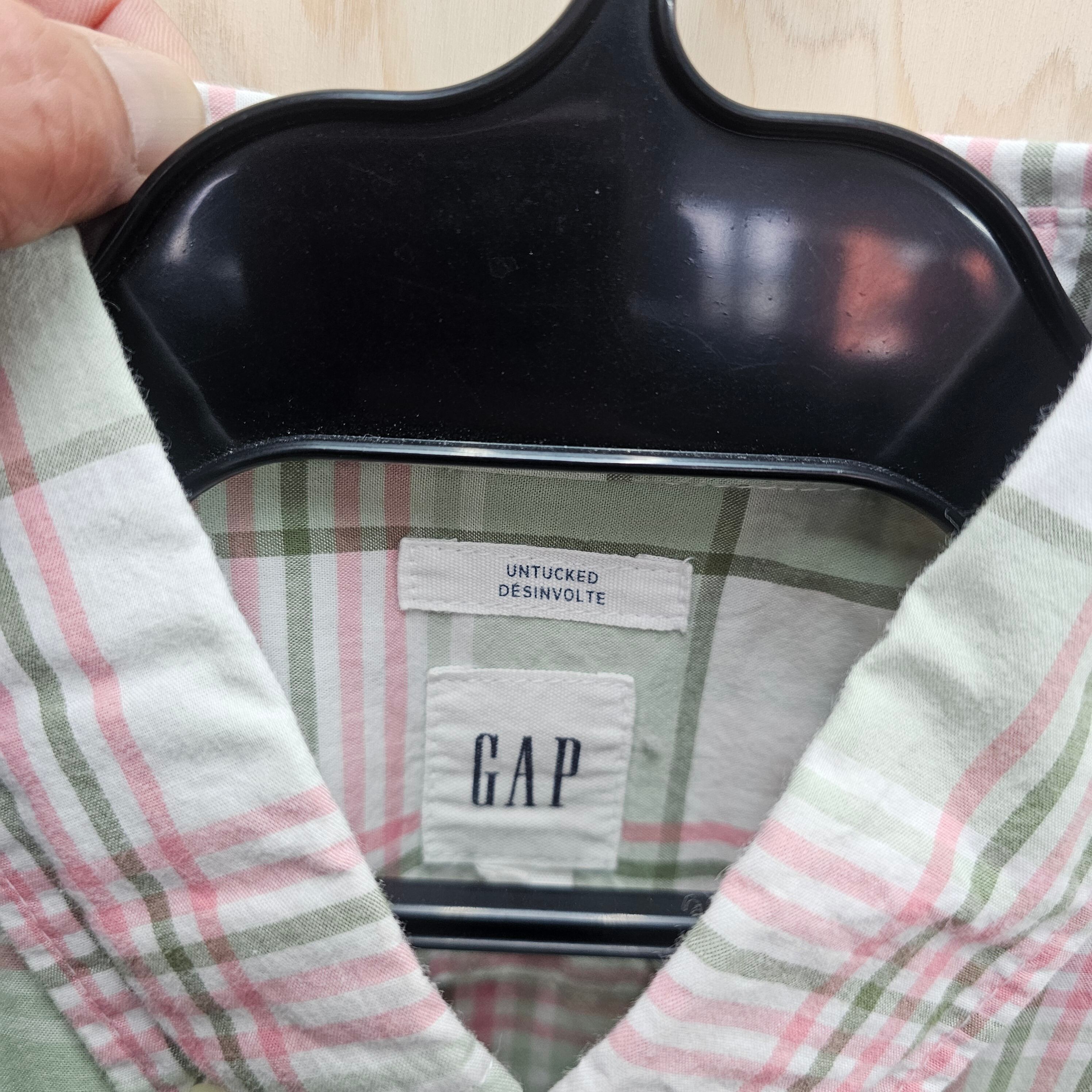 『 GAP / ギャップ 』のBDチェックシャツは、淡いライトグリーン色に魅力的なチェック柄が映えるカジュアルな一枚です!