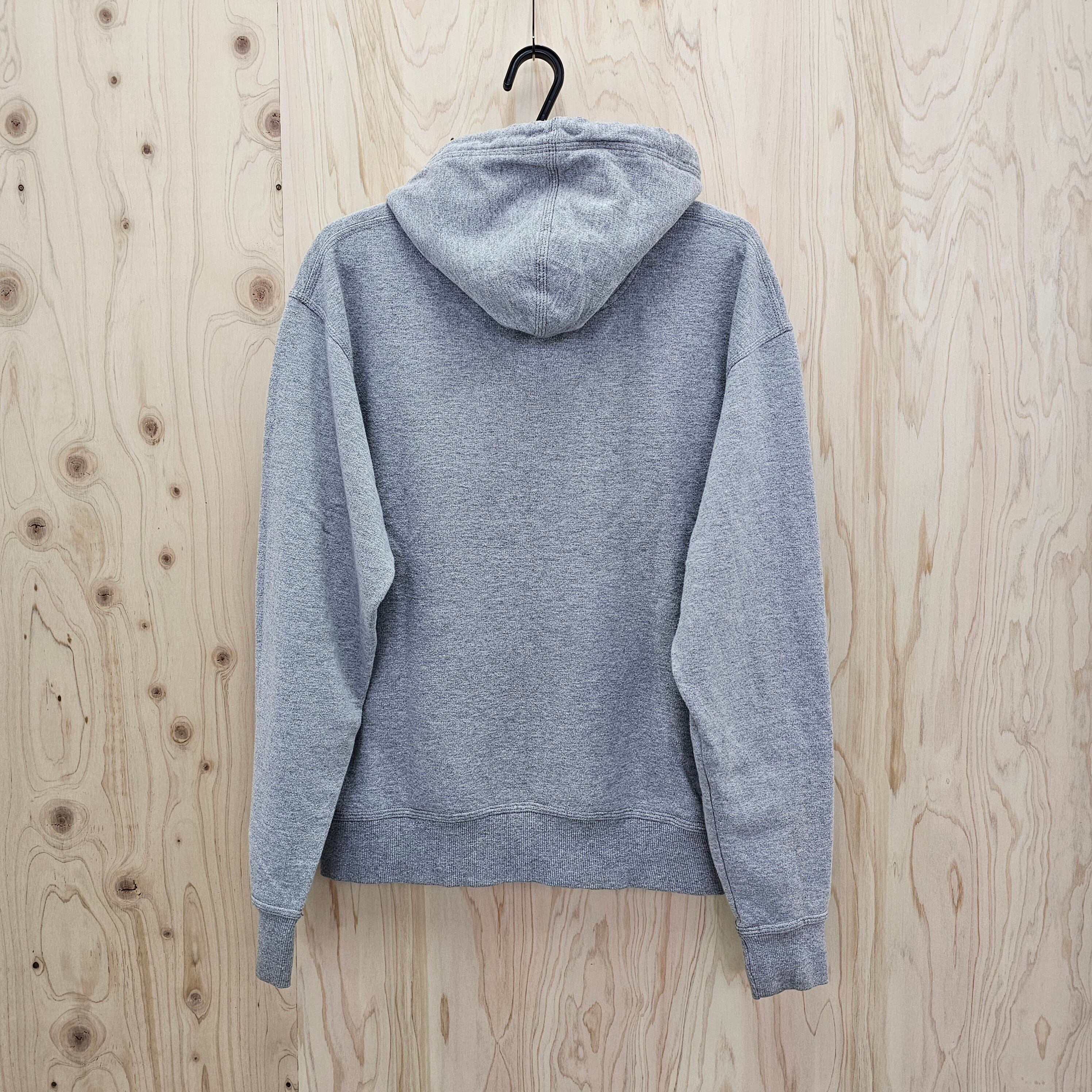 グレー色のシンプルなデザインにフロントにはアイコニックなブランドロゴがプリントされ、袖にはロゴ刺繍がさりげないアクセントを加えています。カンガルーポケット付きで機能性も抜群です!