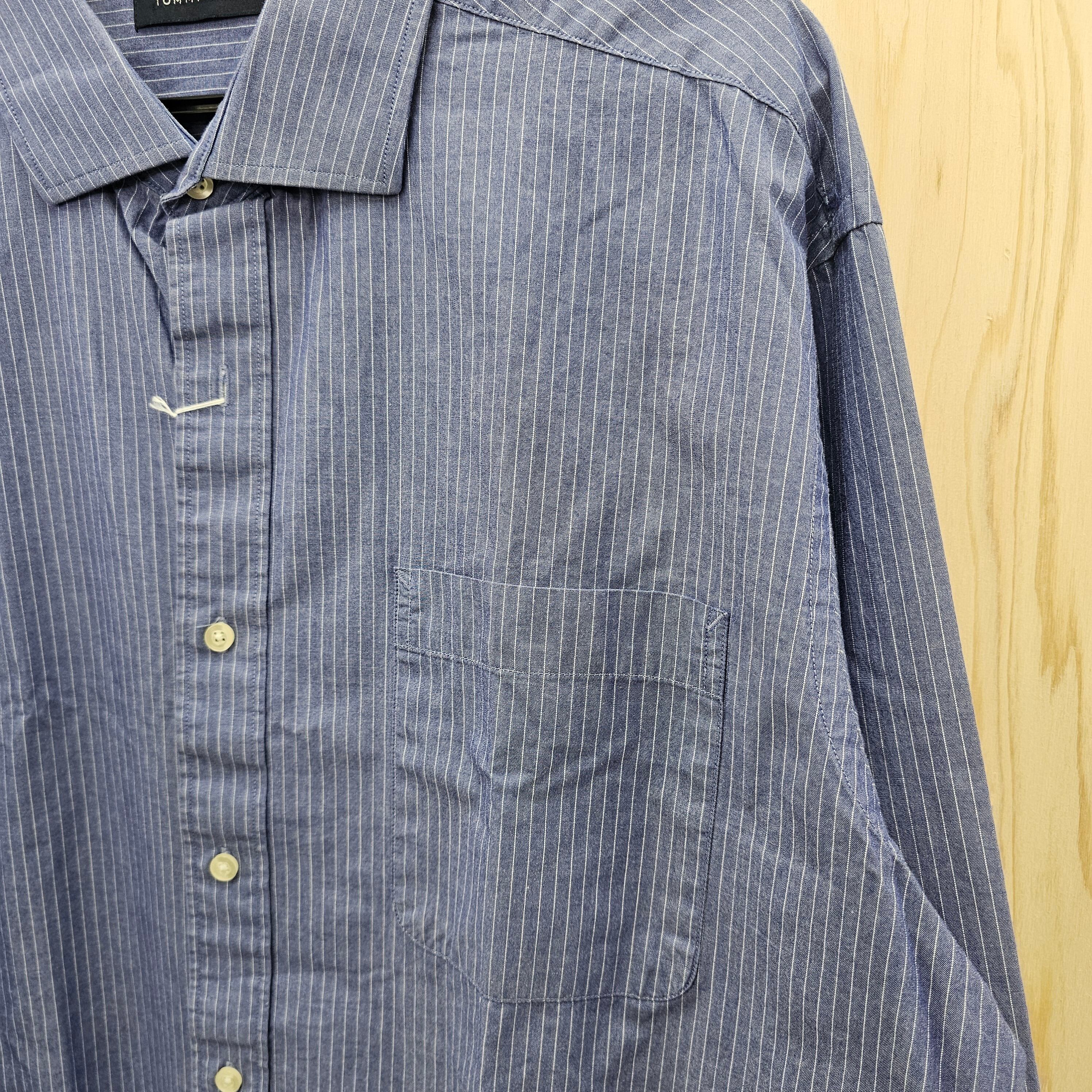【『 TOMMY HILFIGER / トミーヒルフィガー 』 ストライプシャツ ( Lサイズ ) ブルー色 】