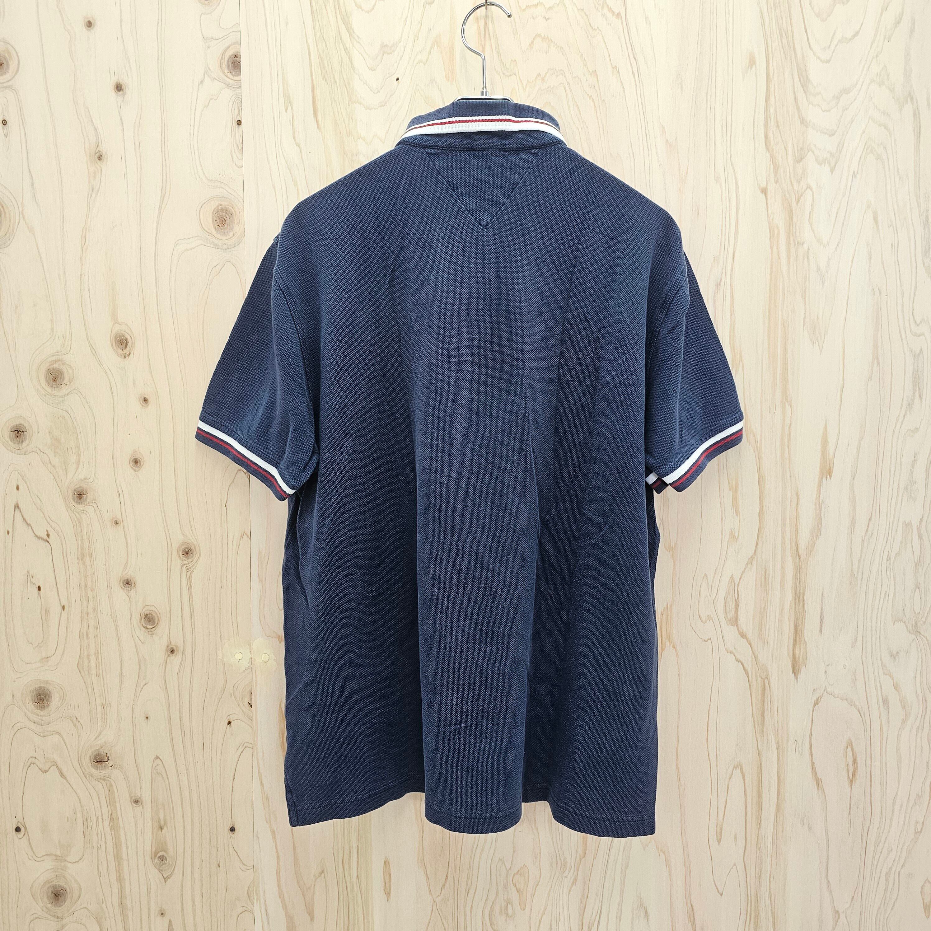 【『TOMMY HILFIGER / トミーヒルフィガー』 ロゴ刺繍ポロシャツ (XLサイズ) ネイビー色】