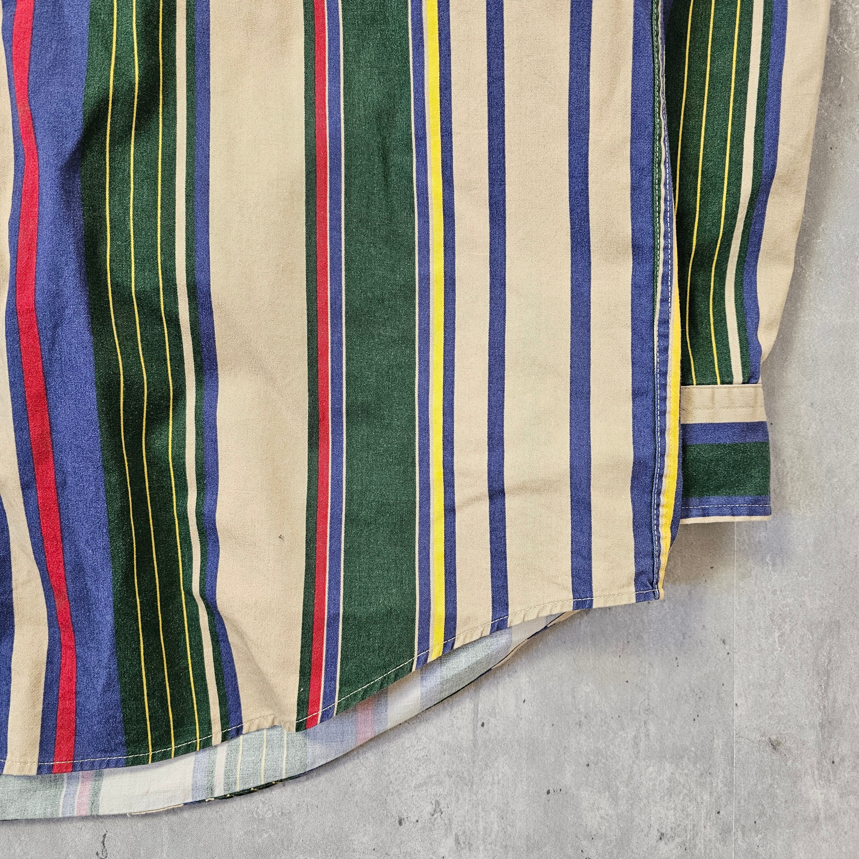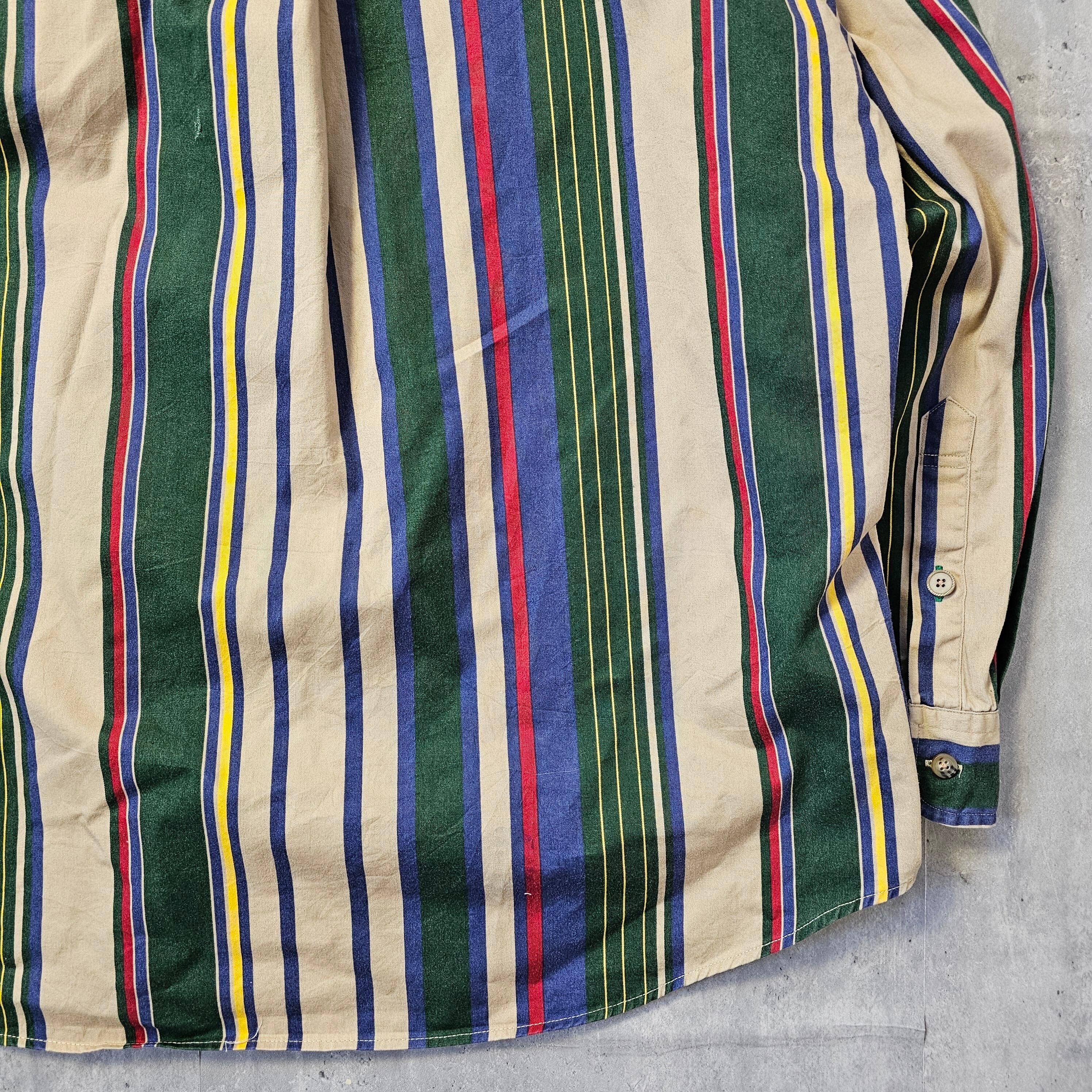 『 TOMMY HILFIGER / トミーヒルフィガー 』ストライプボタンダウンシャツ ( Lサイズ ) ベージュ✕グリーン色