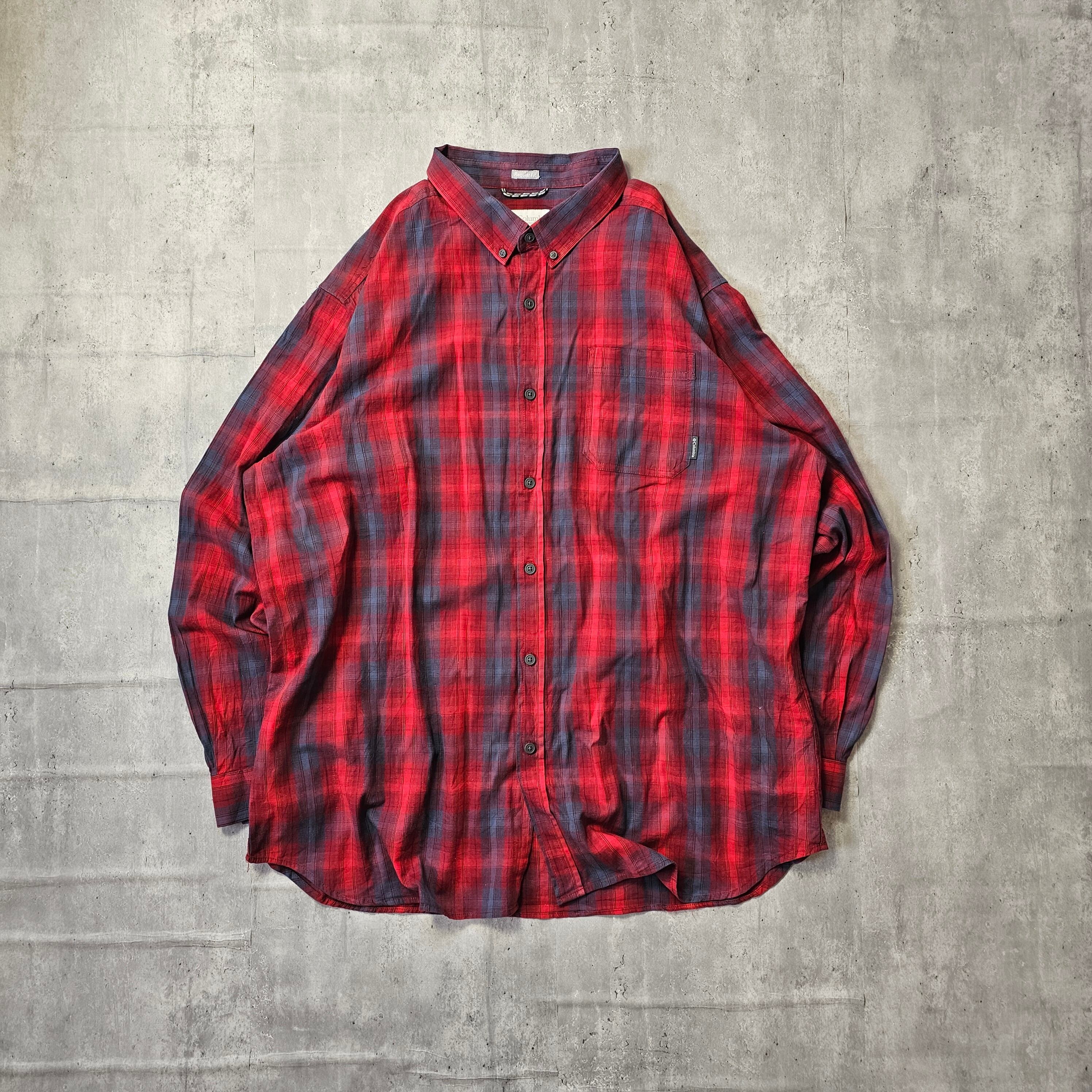 『 Columbia / コロンビア 』レギュラーフィットチェックボタンダウンシャツ ( 3XLサイズ ) レッド色