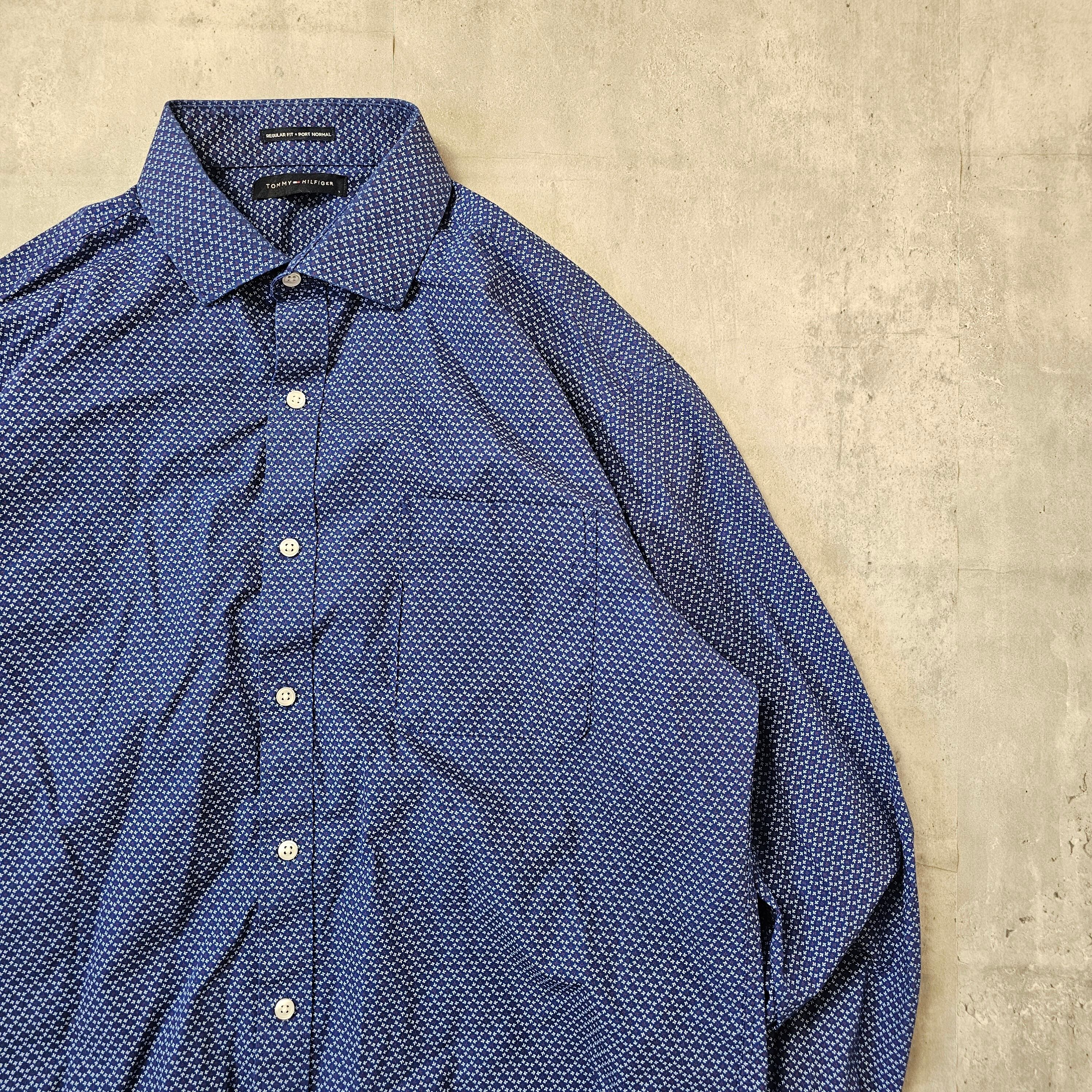 『 TOMMY HILFIGER / トミーヒルフィガー 』ドット柄シャツ ( Lサイズ ) ネイビー色