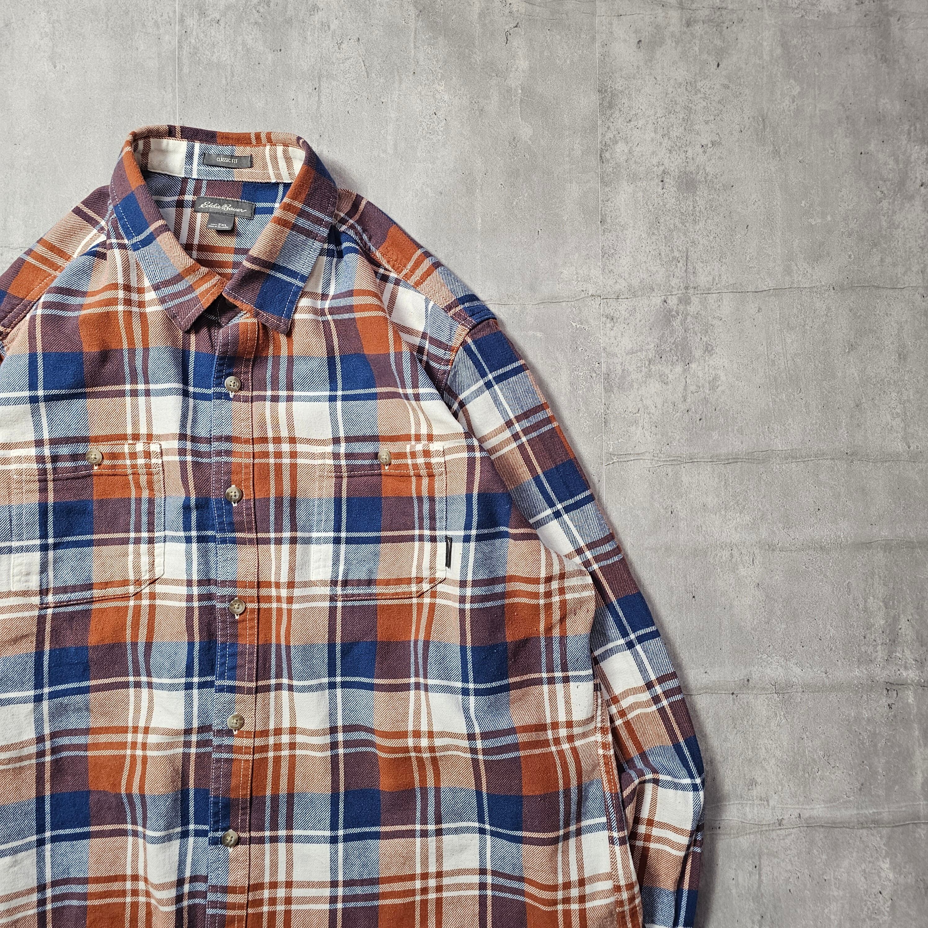 『 EDDIEBAUER / エディーバウアー 』のチェックネルシャツは、温かみの感じるオレンジ色が魅力の一枚です!