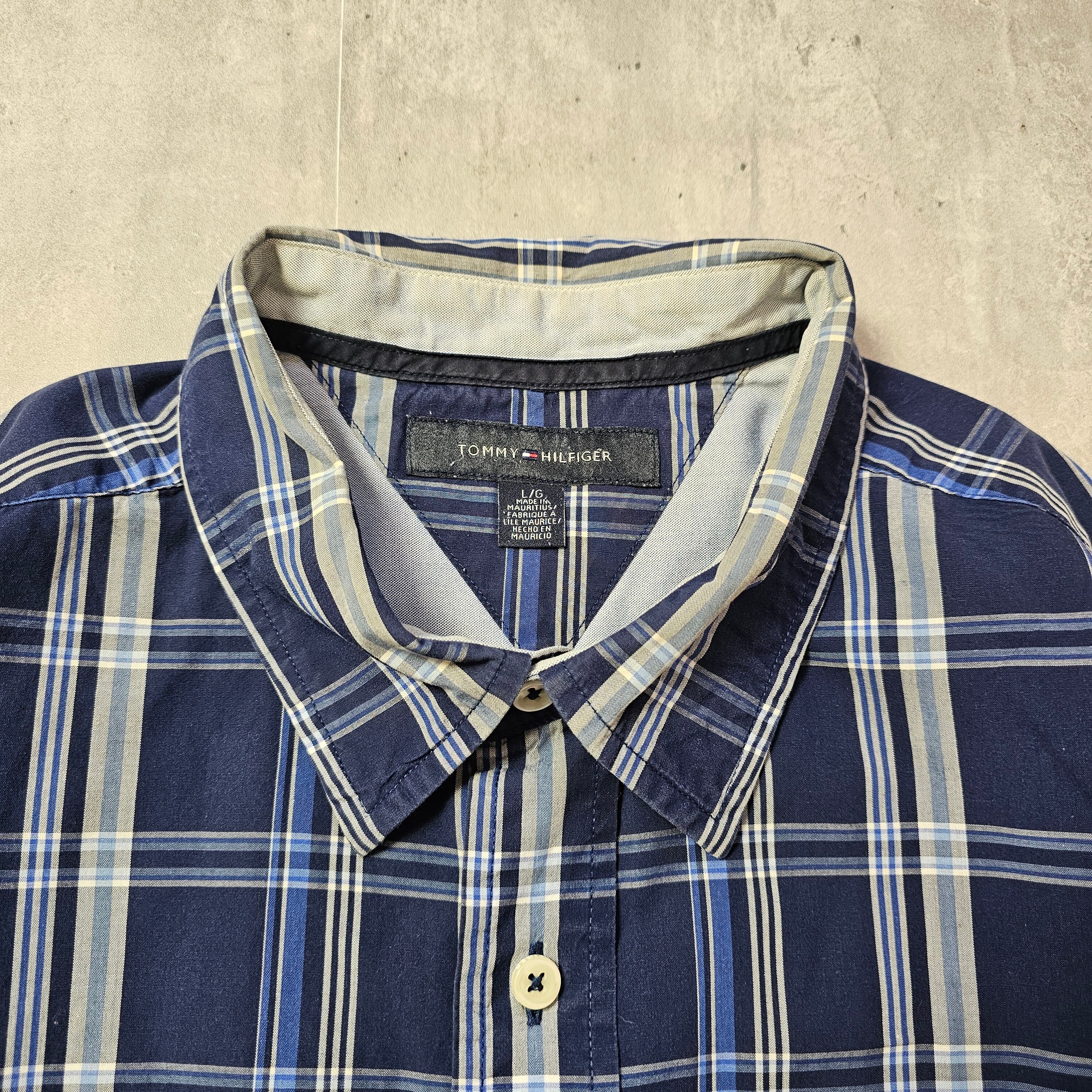【『 TOMMY HILFIGER / トミーヒルフィガー 』 チェックシャツ ( Lサイズ ) ネイビー色 】