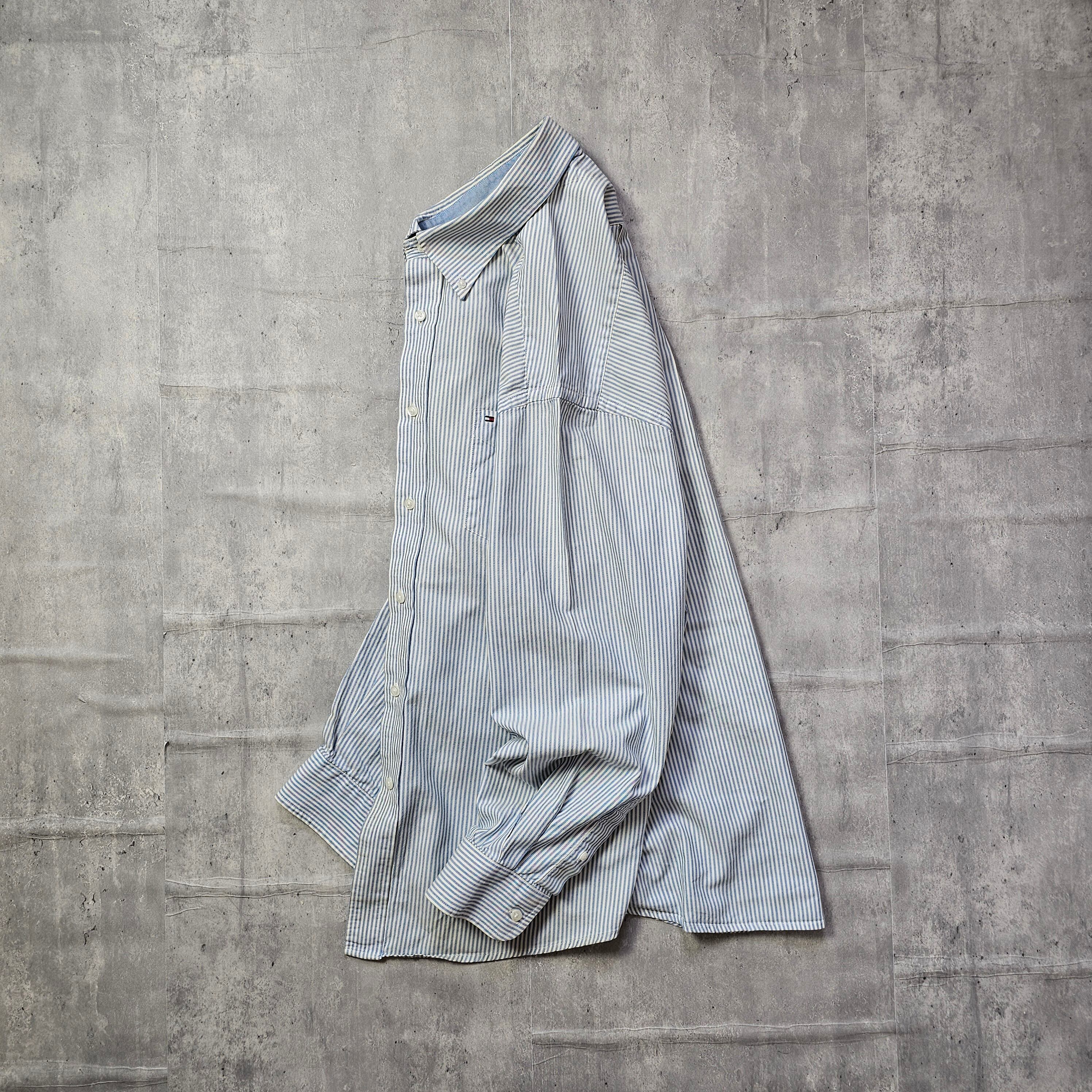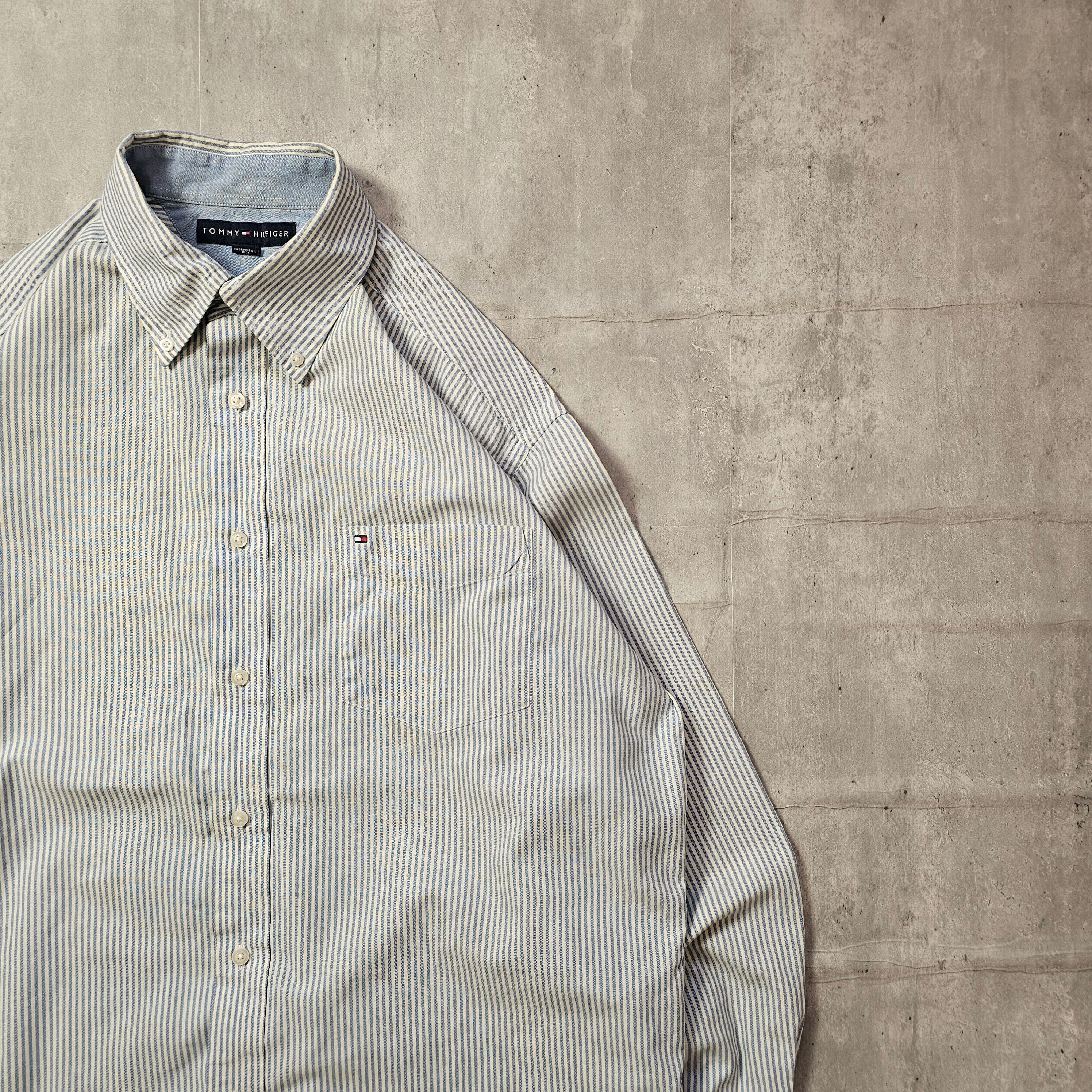 【『 TOMMY HILFIGER / トミーヒルフィガー 』 BDストライプシャツ ( Lサイズ ) ブルー色 】