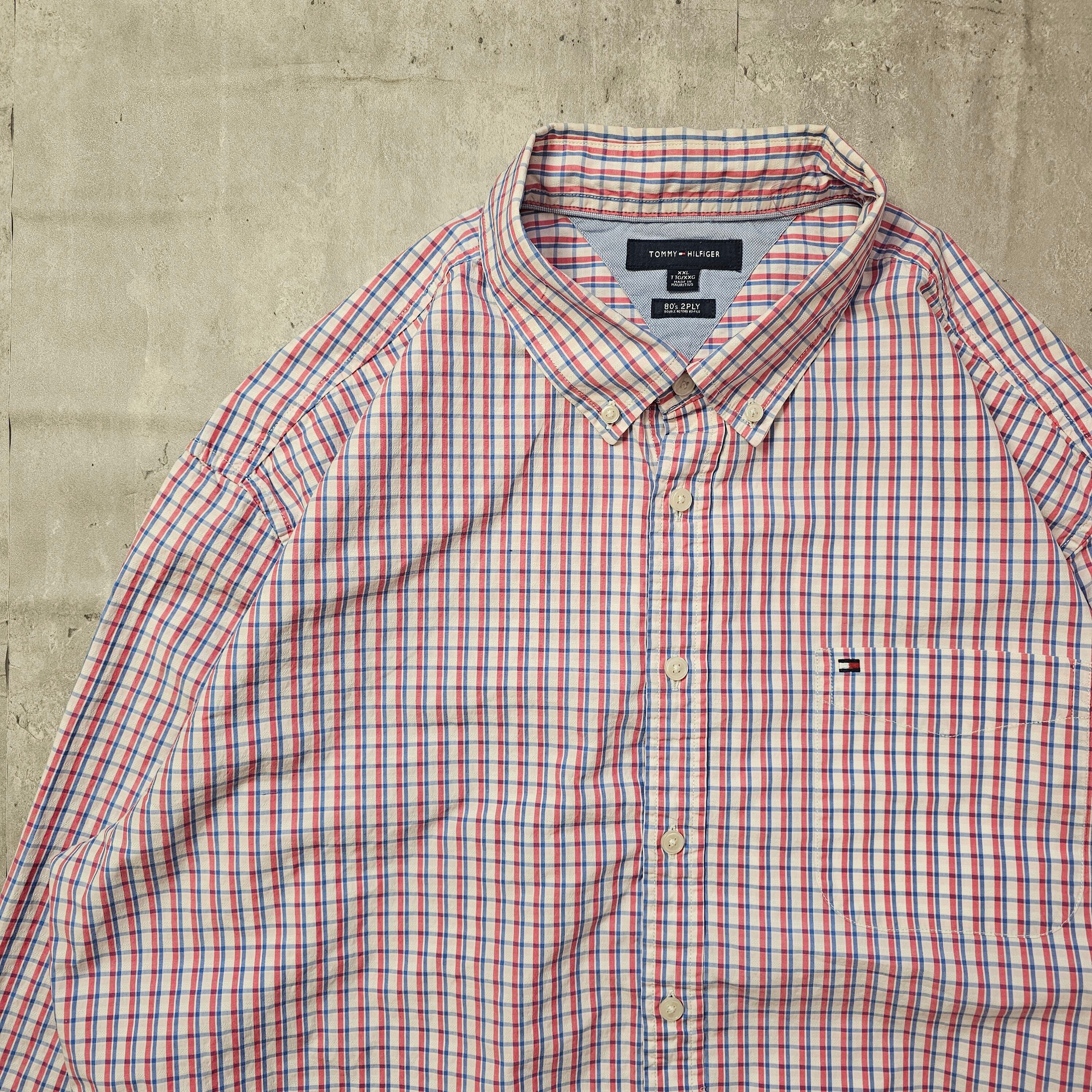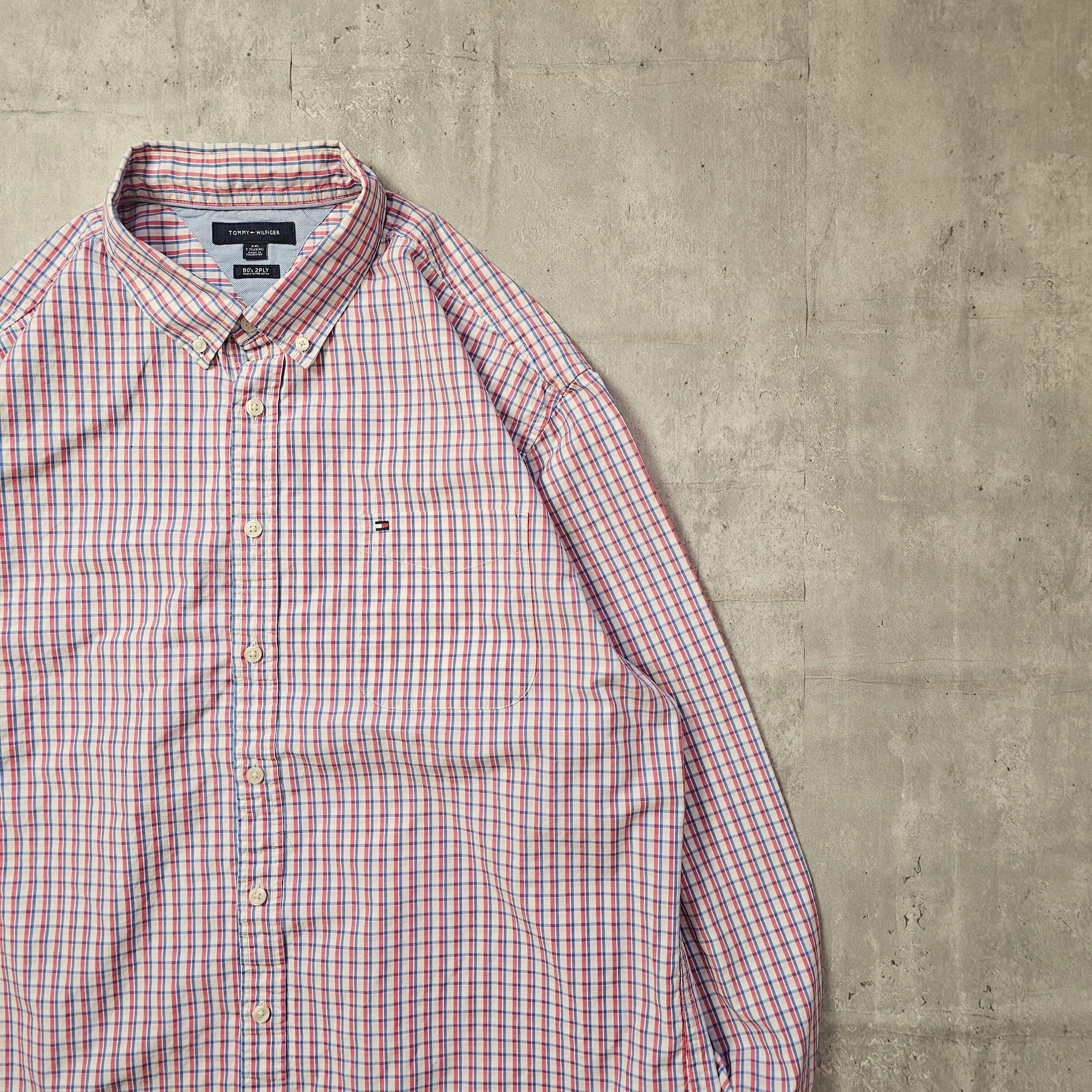 【『 TOMMY HILFIGER / トミーヒルフィガー 』 BDチェックシャツ ( XXLサイズ ) レッド色 】