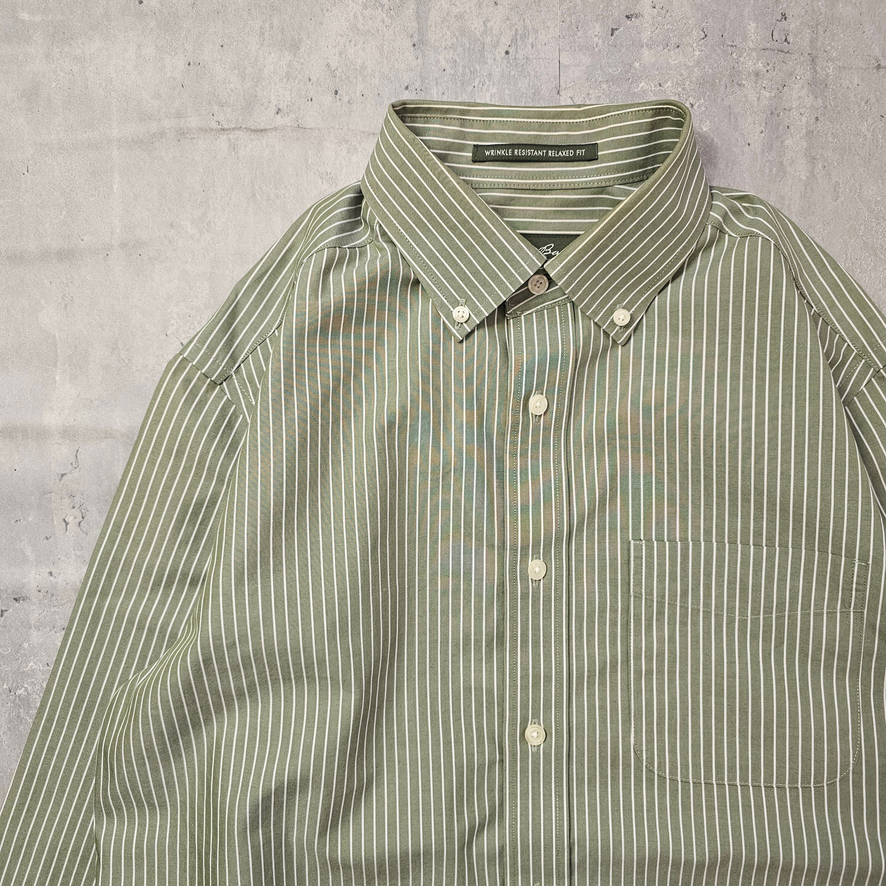 『 EDDIEBAUER / エディーバウアー 』のBDストライプシャツは、ハリ感があり上品な仕上がりが魅力的なカーキ色の一枚です!